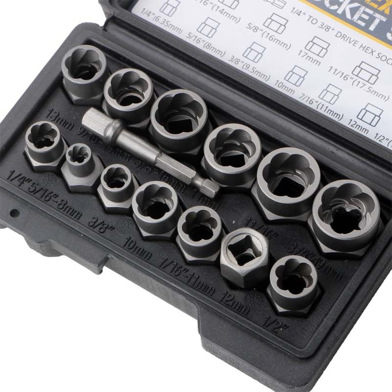 FACILE À UTILISER: Chaque manchon est marqué avec des dimensions pour une identification rapide, et le jeu d’extracteurs de vis permet de retirer facilement les écrous et les boulons à vis endommagés, gelés et rouillés Bixury Extracteurs D'écrous Lot de 14 Extracteurs de vis Extracteur Ecrou Antivol Extracteur Boulon Antivol avec Étui de Rangement Solide pour Enlever les Écrous et Vis Rouillés Endommagés 6,35-19 mm MATÉRIEL: 14 pièces d’outil de manchon de retrait d’écrou sont en Cr-Mo, qui n’est pas facile à rouiller, dureté élevée, solide et durable Kit Extracteur Avec étui Rangement Extracteurs D'écrous Lot De 14 Extracteurs De Vis Extracteur Extracteur Antivol Cr-Mo EN STOCK : Lot de 14 extracteurs d'écrous, extracteur de vis avec adaptateur hexagonal, arrache-écrous, extracteur d'écrous pour enlever les vis, boulons et écrous endommagés, LYY-1545 pas cher. Livraison rapide partout en France extracteur antivol boulons écrou VAG Lot de 14 extracteurs d'écrous Jeu d'extracteurs de vis à profil