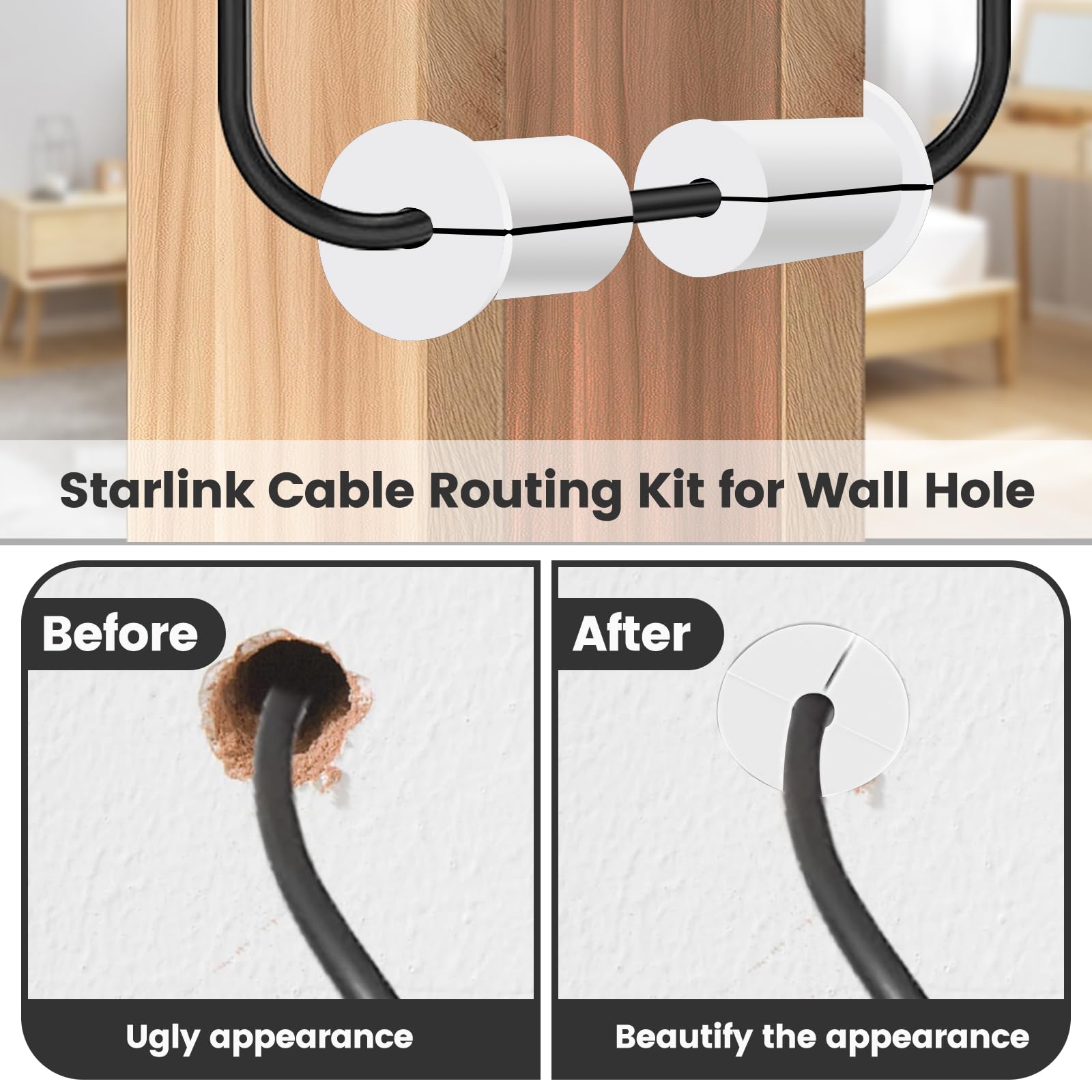 Gestion simplifiée des câbles : Les passe-câbles muraux simplifient le cheminement des câbles, éliminent l’encombrement, scellent les ouvertures murales et protègent les câbles des arêtes vives Large compatibilité : ces passe-fils muraux pour câbles sont conçus pour s'adapter aux câbles jusqu'à 7 mm de diamètre à travers des trous muraux de 19 mm. Cache Fil Tv Mural 2pcs Kit De Routage De Câble Pour Starlink Trou Ural De 2,54c, Silicone Passe-Câble Passe-Fil Passe Cable Blanc Spécification : Couleur : blanc Matériel: silicone Taille du produit : 3,8x2,6 cm Détails du forfait : 4 x passe-câble Note: En raison de la mesure manuelle, la taille et le poids peuvent présenter une certaine erreur. Installation facile de type divisé : la conception innovante divisée permet une insertion simple du câble sans détacher les connecteurs. Appuyez simplement sur le passe-câble dans l'ouverture de votre mur pour une configuration de gestion des câbles de qualité professionnelle en quelques secondes. Passe Paroi pour tuyauterie PVC de 50 mm Passe paroi pour soufflet de direction Le forfait comprend : vous recevrez 4 pièces de passe-câbles muraux de 19 mm, offrant une protection essentielle contre les risques de trébuchement et les dommages aux murs tout en gardant vos câbles Ethernet et TV bien organisés et acheminés de manière professionnelle. Excellent pour les configurations de câbles Starlink, les systèmes de divertissement à domicile, l'organisation des câbles de bureau et les applications générales de routage des fils. En raison de la différence entre les différents moniteurs, il peut y avoir une légère différence de couleur.