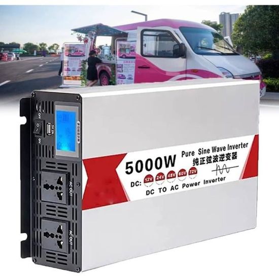 Convertisseur 12v 220v 4000W/8000W Onduleur avec Télécommande Onduleur à Onde Sinusoïdale Modifiée à Puissance De Crête De 4000W Affichage A Led Onduleur De Puissance Nominale 300w Convertisseur Dc 12v A Ac 220v Onduleur De Chargeur De Voiture Haute Frequence Av 76089464 Le ventilateur intégré réduit la chaleur et prévient les pannes de courant. Description:Onduleur 4000 W 12 V vers 220 V à onde sinusoïdale modifiée, convertisseur intelligent DC 12 V vers AC 220 V, double port USB, pour voiture et énergie solaireCaractéristiques:Couleur : noir (facultatif)Forme d'onde de sortie : onde sinusoïdale modifiéePuissance réelle : 500 WPuissance de crête : 4000 WTension d'entrée : 12 VPlage de tension d'entrée : 9,5 V-15,5 VTension de sortie : 220 VPlage de tension de sortie : 220 V ± 10 %Fréquence : 60 HzEfficacité de l'onduleur : 0,9Topologie du circuit : type push et encourageCourant à vide : ≤ 0,7 AProtection basse tension : avec une tension de protection minimale de 9,5 VProtection haute tension : avec une tension de protection maximale de 15,5 VProtection contre les surcharges : OuiProtection contre les courts-circuits de sortie : OuiProtection contre les inversions de polarité des pôles positifs et négatifs : OuiStabilisation de la tension de sortie : OuiBuzzer de protection : OuiInterface USB : 2,1 A x 2Mode de connexion du terminal d'entrée: terminalFonctionnalité:1., Le double écran numérique LCD vous permet de conserver la tension de sortie et la valeur de tension de la batterie à tout moment., 2., Fonction d'avertissement de panne. Ces onduleurs fournissent une puissance de sortie robuste, garantissant le fonctionnement efficace et sans interruption de vos appareils et équipements fréquemment utilisés. Convertisseur 12V à 220V 4000W onde pur sinus - Onduleur 139,99 € sur Cdiscount Marketplace Aller sur la boutique Bonne résistance aux chocs, résistance à la pression, résistance à la chaleur et effet ignifuge pour assurer la sécurité GIANDEL 4000W Convertisseur 12V 220V Pur Sinus Onduleur à Onde Sinusoïdale Pure Transformateur Compatible Lithium-Batterie pour La Maison, RV, Camion, Hors Réseau Solaire avec 30 Pieds Télécommande La coque en alliage d'aluminium durable offre une protection avancée contre les chutes et les collisions. Emballage inclus1 x OnduleurQue ce soit en voiture, en camping-car ou à la maison, cet onduleur répond à vos divers besoins en énergie, en fournissant une alimentation fiable à une large gamme d'appareils.