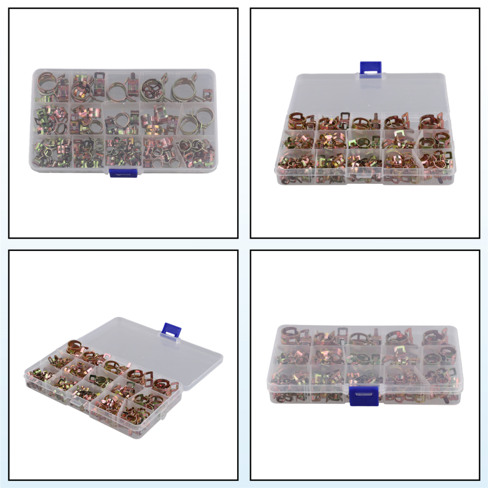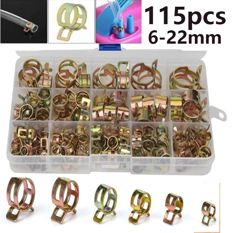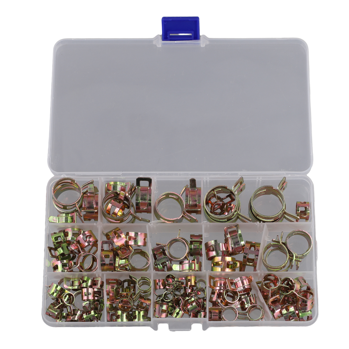 Matériau de haute qualité : Nos 115 colliers de serrage à ressort sont fabriqués en acier zingué, garantissant durabilité et résistance. Ces colliers sont conçus pour maintenir solidement les conduites, les tuyaux d'eau et les tubes d'air, assurant une connexion fiable et durable Remarque : la couleur réelle de l'article peut être légèrement différente de celle de la photo en fonction des paramètres d'affichage et de luminosité de votre ordinateur. Pinces Ressort Plomberie Lot De 115 Colliers De Serrage à Ressort De 6 à 22 Mm En Plaqué Zinc Pinces à Ressort Tuyaux Matériau : acier au carbone. Il suffit de positionner la pince sur le tuyau ou le tube et de la libérer pour une prise en main ferme. Que vous travailliez avec des tuyaux automobiles, des systèmes d'irrigation de jardin ou de la plomberie domestique, nos colliers de serrage offrent une solution sûre et adaptable., 5., Emballage pratique : chaque lot de 115 colliers de serrage à ressort est livré dans un étui de rangement pratique, gardant toutes les pinces organisées et facilement accessibles. YIXISI 90 Pièces 6/7/8/9/10/12/14/16 Clip à Ressort Tuyau Serrage... NORMACLAMP® FBS Collier de serrage à ressort - Acier à ressort C75S Seul le contenu de l'emballage ci-dessus, les autres produits ne sont pas inclus. L'erreur de mesure autorisée est de +/- 1 à 3 cm., 1., Matériau de haute qualité : nos 115 colliers de serrage à ressort sont fabriqués en acier zingué, assurant durabilité et résistance. Contenu de l'emballage : 115 colliers de serrage à ressort (avec boîte).