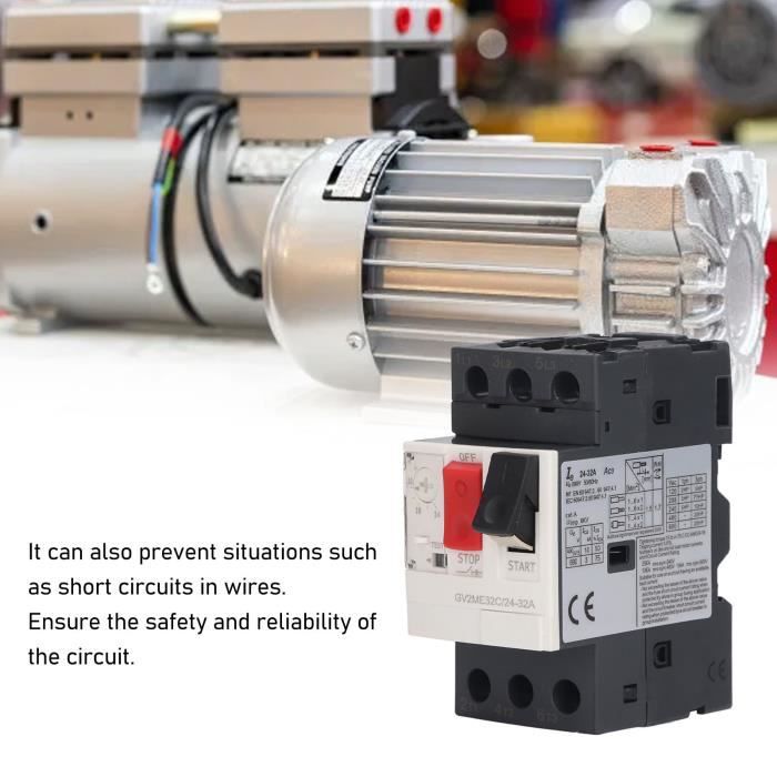 GV2-ME08C-GV2 : 2,5-4 A. * Prévention de surcharge thermique : doté d'une protection avancée contre les surcharges thermiques, il surveille efficacement la température du moteur et déconnecte le circuit dans des conditions de surchauffe, améliorant ainsi la sécurité opérationnelle et la longévité. * Dimensions : 89 x 44,5 x 67,2 mm., *Couleur : noir., Fréquence : 50/60 Hz. Compatibilité : ce commutateur est compatible avec une large gamme de moteurs monophasés et triphasés, pouvant accueillir des puissances nominales de 37 kW à 15 kW pour diverses applications industrielles. Caractéristiques : * Nom de la pièce : disjoncteur moteur., *Matériau : plastique. INTERRUPTEUR DE PROTECTION moteur haute performance GV2ME pour un GV2-ME16C-GV2 : 9-14A GV2-ME20C-GV2 : 13-18A GV2-ME21C-GV2 : 17-23 A. Protection fiable contre les surintensités : conçu pour fournir une protection fiable contre les surintensités, ce commutateur de démarrage de moteur aide à prévenir les dommages potentiels en protégeant les moteurs d'un flux de courant excessif. Comprendre le schéma d'un court circuit électrique Disjoncteur Moteur Industriel 15kW Moteur Pour Interrupteur De Protection GV2 Series Démarreur Distributeur Schneider Gv2 GV2-ME07C-GV2 : 1,6-2,5 A. *Correspondance précise du courant : chaque modèle de la série GV2 correspond à des nominations de courant spécifiques, permettant une correspondance précise avec le courant nominal du moteur pour assurer une protection optimale sans trébucher gênant. Protection fiable contre les surintensités : ce commutateur de protection de démarreur de moteur est conçu pour fournir une protection fiable contre les surintensités, protégeant les moteurs contre les courants excessifs nocifs qui peuvent causer de graves dommages * Déconnexion fiable du circuit : en utilisant un principe thermique-magnétique, ce commutateur fournit une déconnexion rapide en cas de flux de courant anormal, améliorant ainsi la fiabilité de l'ensemble du système moteur et des réparations coûteuses. GV2-ME10C-GV2 : 4-6,3 A. Caractéristiques : *Protection contre les surintensités : ce moteur pour interrupteur de protection est spécialement conçu pour fournir une protection fiable contre les surintensités, que les moteurs sont protégés contre un flux de courant excessif qui pourrait être endommagé. Correspondance actuelle : les modèles de la série GV2 sont adaptés à des nominations de courant spécifiques, permettant une correspondance précise avec le courant nominal du moteur pour une performance optimale sans trébucher gênant.