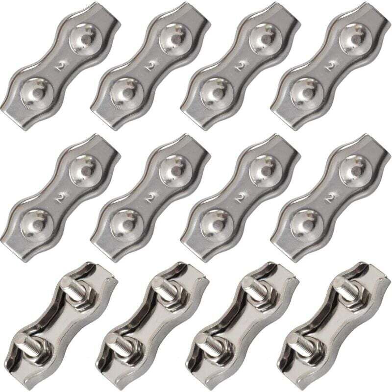 Pinces à Câble en Acier Inoxydable avec des vis aux deux extrémités, avec une grande capacité de serrage. Pince de Corde de Câble en acier inoxydable 304., Anticorrosion et antirouille, solide et durable. Serre-Câbles en Acier Inoxydable convient aux câbles en acier de diamètre 1 - 2mm ainsi qu'aux câbles. Canadian Tire Pince Duplex M4 Serre-Câbles M4 - Lot De 10 - Acier Inoxydable 304 - Pour Câble Métallique 4mm - Usage Extérieur Serre-câble Câble Métallique 4mm Accessoire Câble Corde à Linge Un serre-câble inox est un dispositif utilisé pour fixer et sécuriser des câbles ou des fils, souvent dans des environnements industriels ou marins. Fabriqué en acier inoxydable, il offre une résistance élevée à la corrosion, ce qui le rend idéal pour des conditions difficiles Large application : Facile à installer, à démonter et à réutiliser, ce serre-câble convient aux câbles métalliques de 1 mm à 1,5 mm ; le serre-câble double permet de fixer des cordes, des fils, des cordes à linge, etc Serre Cable Inox Cable Metallique 6mm,16 Pièces Serre Cable Acier