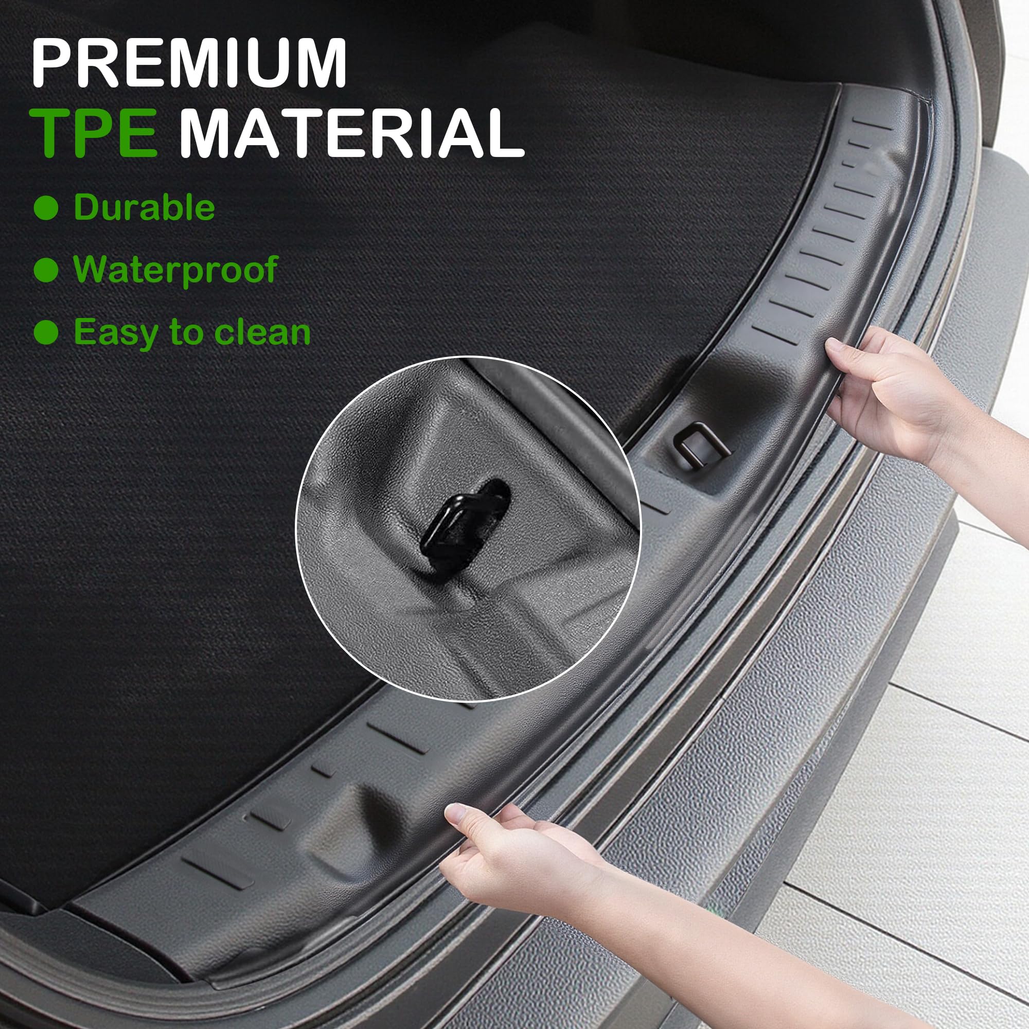Protection Complète du Seuil de Coffre] Protège entièrement le seuil en suède contre les rayures, la saleté et l'usure, avec une couverture bord à bord. [Fixation Stable et Sécurisée] Conçu sur mesure, le protège-seuil reste bien en place grâce à des bandes Velcro pour une stabilité accrue Dites adieu au désordre grâce au rangement intégré. Accessoire Tesla Tpe Anti-rayures Velcro Couvercle De Seuil De Cofe Arrière Pour Tesla Modèle Y Juniper Launch 2025 2024, Tapis De Protection De Seuil De Cofe, Protection De Chargement TPE, Garnitures D'insertion Latérale Protège Seuil Coffre Tesla 1 Résiste aux rayures 2 Utilisation facile 3 Ajustement parfait [Fixation Stable et Sécurisée] Conçu sur mesure, le protège-seuil reste bien en place grâce à des bandes Velcro pour une stabilité accrue. [Compatibilité] Compatible avec le Tesla Model Y Juniper 2025. Spigen confirme la compatibilité avec le futur modèle Model Y Juniper 2025. Cela assure que, même si vous attendez le nouveau modèle, vous pouvez déjà vous équiper avec un accessoire parfaitement ajusté aux contours du seuil, garantissant une protection sans faille Spigen Tesla Model Y Schmutzfänger Spritzschutz, Schmutzfänger für Et cachez vos essentiels en poussant le plateau vers l’avant. [Conception Premium] Fabriqué en TPE durable et de haute qualité, parfaitement assorti à l’intérieur de votre Tesla. Model Y Juniper Organiseur Console Centrale