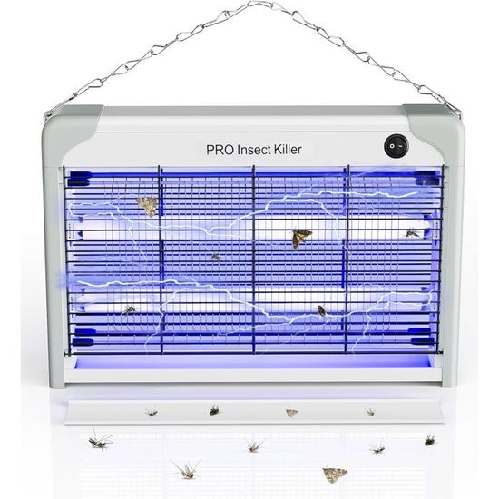 Le réseau haute tension de 4000V agit comme un tue mouche électrique puissant, éliminant les insectes sur le coup – idéal comme piège à mouche intérieur pour des espaces jusqu'à 80m². Lampe Anti Moustique, Tueur d'Insectes Electrique UV 20W, Anti Insectes Volants, Moustiques, Guêpes, Moucherons, sans Produits Chimiques, Portée Jusqu'à 80m² avec 2 Ampoules de Rechange Une solution ultra-efficace pour une protection fiable. Économisez sur les coûts de remplacement et profitez d'une lutte anti-insectes efficace pendant des années – la solution pratique contre les problèmes de lampe anti moustique ou de lampe anti mouche. Son fonctionnement silencieux (moins de 25 décibels) n'interfère ni avec votre sommeil ni avec votre travail, faisant de ce piège à mouche intérieur un allié discret. Tue Insectes électrique 4000V Lampe Anti Moustique 4500V 20W UV Tueur D'Insectes Électrique Anti Insectes Répulsif Efficace Moucherons Cuisine Élimination 100% Physique - Sécurisée & Sans Produits Chimiques : Fonctionnant comme un piège à mouche intérieur électrique, cet anti mouche intérieur et anti moustique ne nécessite aucune toxine ni odeur chimique. Important : Veillez à débrancher l'appareil avant le nettoyage ! Installation Flexible & Fonctionnement Silencieux : Placez facilement cette lampe anti mouche murale dans votre chambre, bureau ou cuisine grâce à la chaîne de suspension métallique incluse. Sa double grille de protection empêche tout contact avec le réseau haute tension, garantissant une sécurité totale pour les enfants et les animaux domestiques. Lampe Anti Moustique, Uv Tueur D'Insectes Électrique, Anti Moustique Electrique Rechargeable Par 2 Lampes UV de Rechange & Utilisation Longue Durée :L'offre comprend 2 lampe UV de rechange de haute qualité (durée de vie : 6000 heures chacune). Confortable et Efficace : Les insectes volants sont attirés par la lumière UV et sont rapidement tués par les grilles métalliques à haute tension. Note : Les moustiques très petits volent très vite et peuvent ne pas être capturés s'ils n'entrent pas dans le maillage