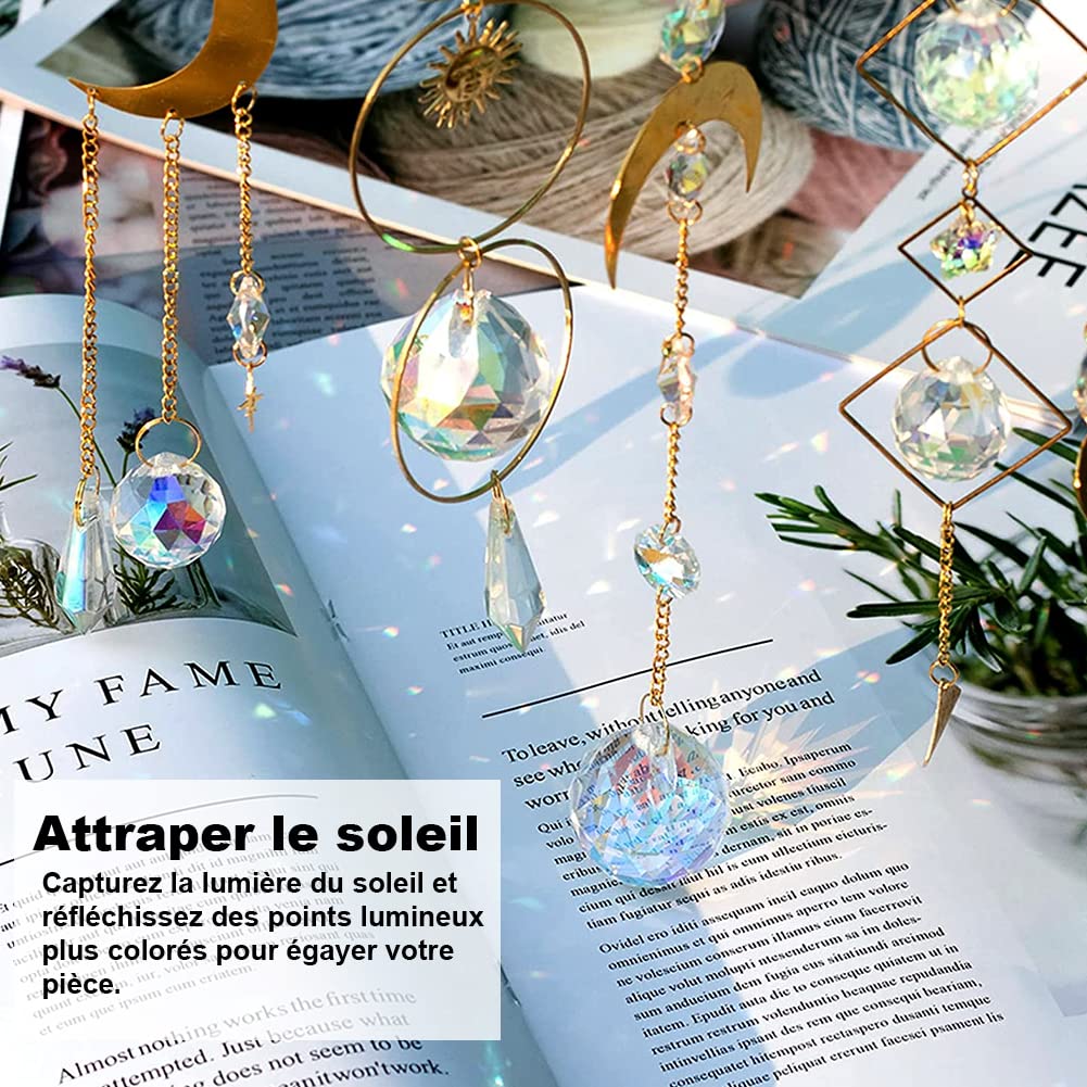 La surface de coupe est limpide, a un bon effet de réfraction et est durable. Parcourez notre sélection de attrapes de soleil en cristal : vous y trouverez les meilleures pièces uniques ou personnalisées de nos boutiques ��Ils créent une ambiance romantique, en reflétant le soleil et en formant des arcs-en-ciel, parfaits pour les mariages, les fiançailles, les fêtes nuptiales et toutes autres occasions. Lancez des prismes arc-en-ciel dans votre chambre lorsque le soleil le frappe. 【🌞Attrape-Soleil en Cristal Polyvalent 】Ces capteurs de lumière en cristal à prisme faits à la main sont le cadeau parfait pour tous ceux qui aiment les articles brillants, tels que les anniversaires, les anniversaires, la Saint-Valentin, les mariages, Noël, etc. Parfait pour être suspendu n'importe où comme pendentif décoratif. Les cristaux suspendus à la fenêtre sont parfaits pour décorer des rideaux, des lustres, des fenêtres, des murs, partout où vous le souhaitez. Attrape Soleil Cristal Suspendu, 5Pcs Attrape Soleil Cristal, Perle De... ��Un pendentif , le cadeau parfait pour elle. Attrape-soleil en cristal de lune, verre à prisme, fabricant d'arc-en-ciel, ornement de fenêtre, cadeau de décoration de jardin, 4 pièces Pendentif Soleil Attrape Soleil En Cristal Pendentif En Cristal Coloru00e9 Violet Cristal Pour Attraper Le Soleil Facile à installer et très simple. Il peut être suspendu où vous voulez le décorer, facile à installer et très simple à utiliser., ��Attention : 1., En raison de la différence de lumière et d'écran, la couleur de l'article peut être légèrement différente de celle de la photo., 2., 1 à 2 mm d'erreur peuvent être tolérés en raison des mesures manuelles., 3., si vous avez des questions, n'hésitez pas à nous contacter, nous résoudrons le problème dans les 12 heures. 【🌙L'ensemble Comprend】 Cet ensemble contient 6 capteurs de lumière en cristal colorés avec des éléments de conception soleil, étoile et lune pour répondre à vos besoins de décoration. La lumière du soleil est décomposée en rayons colorés par le capteur de soleil, créant une atmosphère romantique et rêveuse, ajoutant de la couleur à votre vie. 【💎Crystal Sun Catcher】 Le capteur de vent en cristal est fait de cristal de haute qualité.
