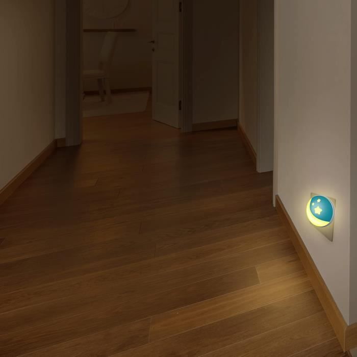LA BONNE LUMINOSITÉ : La lampe de nuit peut être utilisée comme éclairage supplémentaire dans la chambre des enfants, des parents, le couloir, la salle de bain ou les escaliers par exemple. Grâce à la prise intermédiaire installée, vous pouvez brancher un autre appareil électrique par-dessus. Couleur : blanc froid / Options de couleurs : blanc, bleu, vert PRISE INTERMÉDIAIRE : Vous pouvez continuer à utiliser une autre lampe (puissance max : 3680 W) car la veilleuse dispose d'une prise supplémentaire - pas de perte ! Consommation : 0,6 W / Puissance max : 3680 W YUNLEX 2 Pcs Veilleuse Prise Électrique avec Détecteur de CHANGEMENT DE COULEUR : Choisissez votre lumière ambiante. AVEC CAPTEUR : La lampe de poche possède un capteur crépusculaire et de luminosité. CHANGEMENT DE COULEUR : Choisissez votre lumière ambiante. 3 couleurs sont disponibles, réglables via un interrupteur tactile sur la prise Veilleuse Detecteur De Mouvement Trango Lot De 2 Veilleuse LED Pour Enfants Avec Prise 11-253 Lampe D'orientation Avec Capteur Crépusculaire Et Interrupteur Tactile Réglage De Couleur LED Blanc Chaud-bleu-vert, éclairage De Sécurité éclairage Spécial INCLUS DANS LA LIVRAISON 2x veilleuse LED automatique 3 couleurs sont disponibles, réglables via un interrupteur tactile sur la prise : blanc, vert et bleu. Cette veilleuse LED automatique de kwmobile offre un éclairage pratique et sécurisé pour toutes les pièces de la maison. Avec ses fonctionnalités avancées telles que le capteur crépusculaire, la prise intermédiaire et ses 3 couleurs, elle garantit une ambiance adaptée à vos besoins DONNÉES TECHNIQUES Type de lampe : LED (x9, fixe) Elle possède de plus une sécurité enfant. kwmobile - Made for Smart Electronics Éclairez votre pièce d'une lumière douce agréable avec la veilleuse prise kwmobile ÉCLAIRAGE DU SOIR La veilleuse LED avec capteur crépusculaire peut éclairer une chambre, le couloir, les escaliers, la salle de bain, etc. Super simple - il vous suffit de la brancher à une prise secteur et le tour est joué.