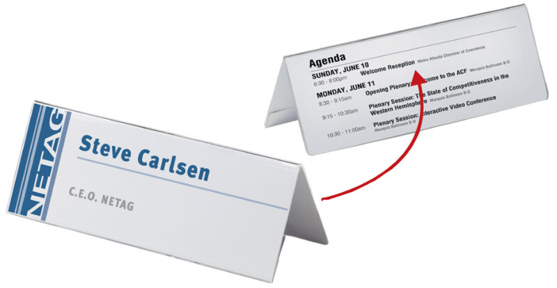 TAILLE ET DIMENSIONS DU PACK : Les dimensions des encarts sont de 52/104 x 100 mm. DURABLE 8694 Porte-nom 40x75 mm avec clip combiné, petit (lot muliple Durable porte-nom chevalet de table ft 52 x 100 mm bij VindiQ Office TRÈS RÉSISTANT : le porte-nom de table est fabriqué en acrylique résistant, ce qui garantit qu'il est conçu pour durer et peut être utilisé plusieurs fois Dimensions de l’insertion : 52/104 x 100 mm (H x L) Porte-nom chevalet stable Avec insertions bristol vierges interchangeable pour une inscription recto-verso Planches d'insertion correspondantes (art. 1458) disponibles séparément Dimensions des planches d'insertion : 54/104 x 100 mm Personnalisation et impression avec les planches d'insertion prédécoupées réf. 145802 Largeur intérieure de l'étiquette (mm) 100 Hauteur intérieure de... DOMAINES D'APPLICATION : Parfait pour les conférences, les séminaires, les bureaux de réception, les expositions, etc. Idéal pour les conférences, séminaires, comptoirs. Plaque Nominative Bureau Durable Porte-nom De Table Pour Cartes 52/104 X 100 Mm Plaque De Bureau Personnalisable