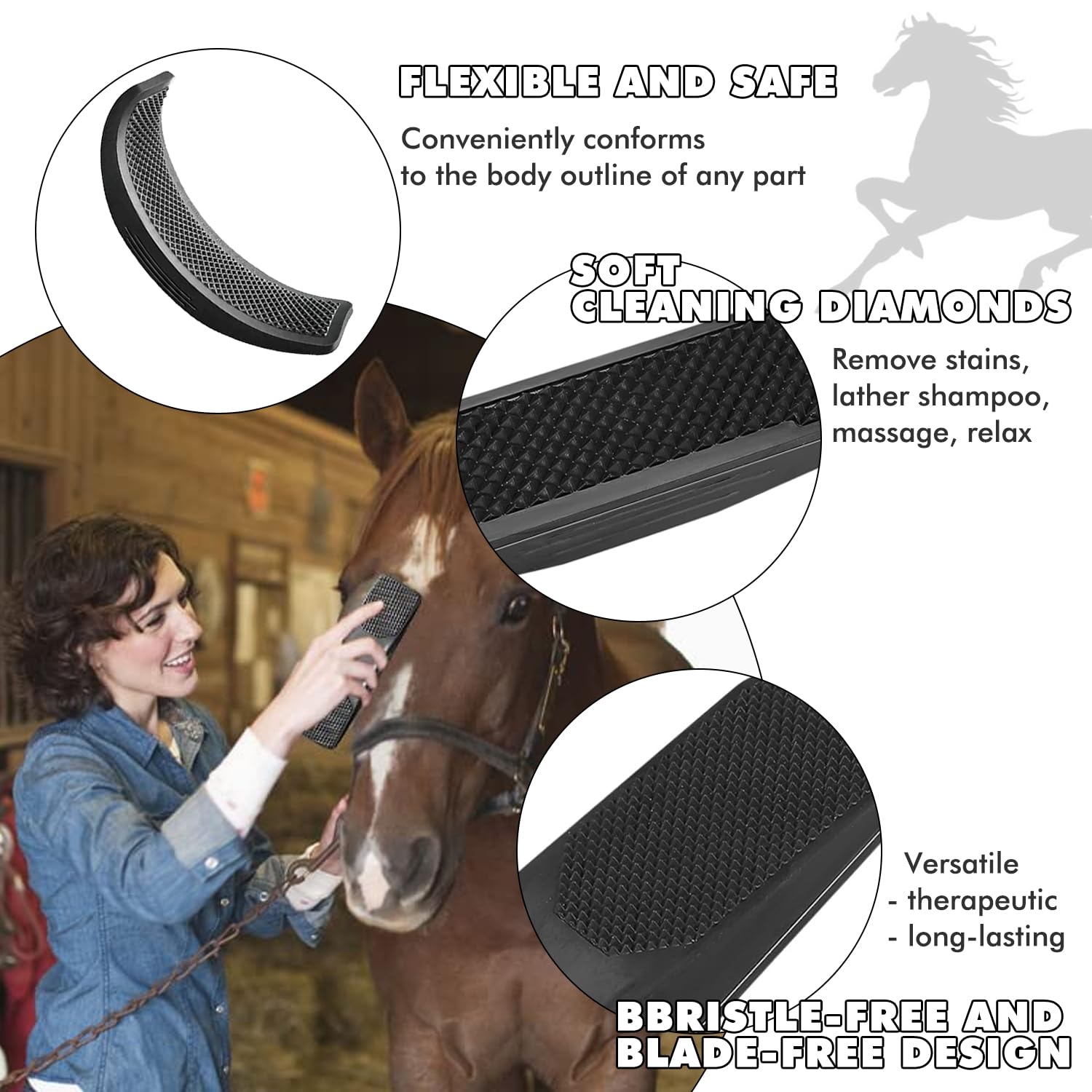 La poignée ergonomique est très facile à nettoyer pour les chevaux. La brosse pour chevaux 6 en 1 est la solution idéale pour un soin complet de votre cheval. Qu'il s'agisse de brosser, de masser ou d'éliminer la saleté et les poils morts, cette brosse multifonctionnelle offre tout ce dont vous avez besoin pour un pelage brillant et un cheval détendu Brosse à cheval, peigne de massage 6 en 1, pour enlever les poils morts, la fourrure et la saleté. Un outil indispensable pour tout kit d'entretien des chevaux Le cadeau parfait pour les amateurs de chevaux Elle peut également être utilisée pour les chiens, les cochons, les chèvres, etc. Massage du cheval : la brosse pour cheval en caoutchouc convient pour le soin et le massage de tout le corps du cheval, favorise la libération des graisses naturelles de la peau et donne au pelage du cheval une finition brillante Brosse à polir pour chevaux | sur Nos ensembles de brosses polyvalents sont petits et compacts, ce qui les rend faciles à transporter. Spécifications: Matériau : silicone., Couleur : noir. Matériau de haute qualité : les brosses 6 en 1 sont fabriquées en matériau TPE, qui est léger et adapté pour une longue durée de vie, confortable à tenir, robuste et durable et a une longue durée de vie. EN STOCK : CSPARKV Brosse à Cheval Multifonctionnelle, 6-en-1 Brosse de Massage pour Chevaux, Brosses de Toilettage de Cheval pour le Nettoyage (Noir), CPS-15295TY pas cher. Livraison rapide partout en France Brosse Cheval Silicone 6 En 1 ZooVenture Brosse 6 En 1 Pour Toilettage Et Massage Pour Chevaux Toilettage Cheval Chien Facile à utiliser : la brosse pour cheval peut être utilisée à la fois sèche et humide, et la brosse en caoutchouc pour cheval est assez petite pour être transportée