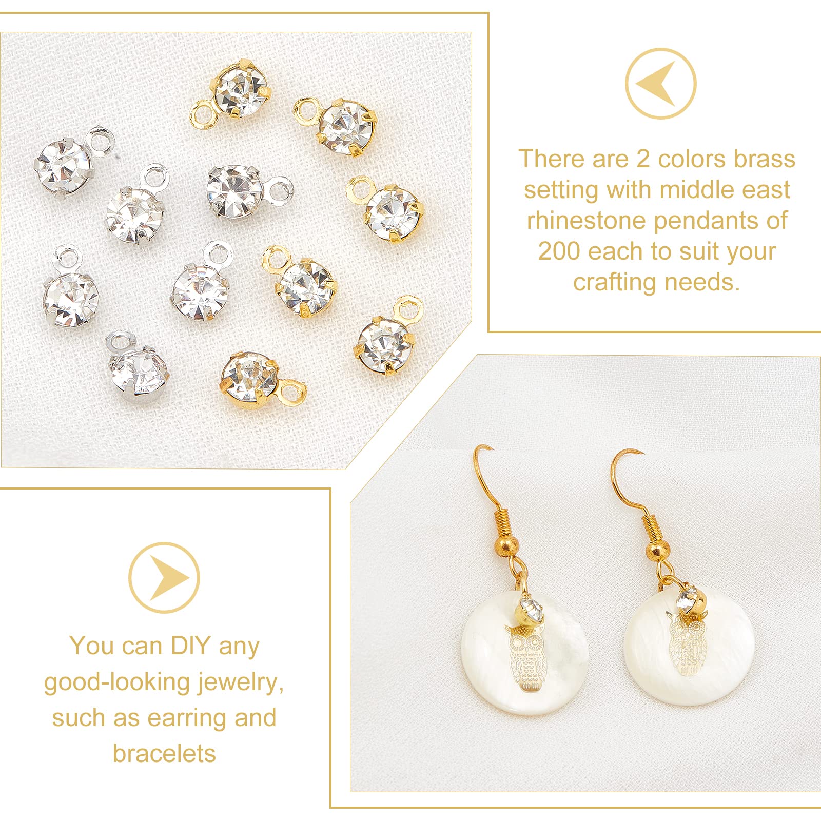 Superfindings 200pcs 2 Couleurs Sertissage En Laiton Avec Pendentifs En Strass Du Moyen Orient Plat Rond Platine Et D Or Pendentifs Plats Ronds Avec Cristaux Pour Fabrication Bijoux SUPERFINDINGS Environ 200pcs 2 Couleurs En Laiton Strass Perles En Verre idéal pour colliers, bracelets et boucles d'oreilles ou autres objets d'artisanat. Caractéristiques SUPERFINDINGS environ 200pcs 2 couleurs en laiton strass breloques plat rond en laiton cristal clair breloques platine doré cubique zircone pendentifs pour la fabrication de bijoux à bricoler soi-même, Trou : 1 mm Taille: Pendentifs plats ronds en laiton avec strass: environ 0., 28 pouce (7 mm) de long, 0., 18 pouce (4., 5 mm) de large, 0., 14 pouce (3., 5mm) d'épaisseur, trou: 0., 04 pouce (1 mm), 2 couleurs, 100 pcs / couleur, 200 pcs; Contenants de perles en plastique: environ 2., 68x2., 05x0., 43 pouce (68x52x11 mm), 1 pc. le pendentif mesure environ 7 mm de long, largeur de 4., 5 mm, épaisseur de 3., 5mm, et a un diamètre de trou de 1 mm. Superfindings 200pcs 2 couleurs sertissage en laiton avec pendentifs en strass du moyen-orient, plat rond, platine et d'or, 7x4.5x3.5mm, Trou: 1mm, 100 pcs / couleur (RB-FH0001-06 L'or est très classique et éblouissant, et il va bien avec la plupart des modèles de bijoux. Breloques en laiton avec strass, plat rond, platine, 8.5x5.5x4mm, Trou: 0.5mm(RB-E507-02P) ; Quantité, Prix par Paquet ; 1-2, US $16.32 ; 3 , US $13.87... Strass étincelants : les strass sont très éblouissants, les mini breloques en strass ajouteront un look élégant et luxueux à vos créations de bijoux et à vos tenues, vous démarquer dans la foule. Emballage et taille : vous recevrez 200 breloques en laiton avec strass.