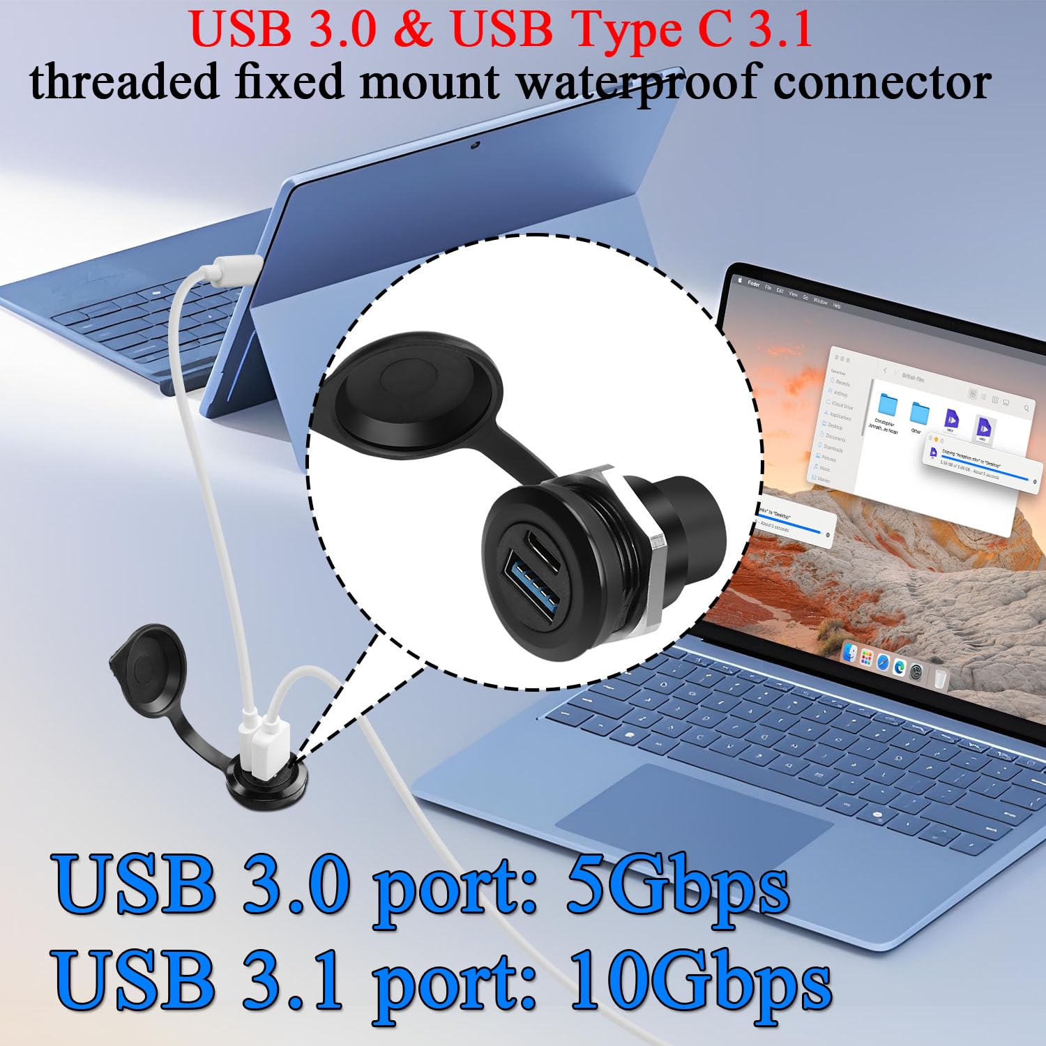 Adaptateur USB Fileté M24 QIANRENON Adaptateur De Données USB C étanche 10 Gbps USB Type C 3.1 Femelle Vers Femelle - Montage étanche - Connecteur USB C - Montage En Vrac - Pour Transfert De Données En Extérieur Charge 5V 1.5A Le joint intégré et le capuchon étanche empêchent la pluie ou la saleté de pénétrer dans le port USB 3., 0, ce qui garantit la propreté interne et évite les dommages. Robuste : connecteur circulaire USB C vers USB 3.0. Coque en alliage de zinc, robuste et durable pour répondre aux besoins spéciaux de certaines conditions environnementales industrielles difficiles. Largement utilisé pour le transfert de données et le chargement d'appareils USB C dans l'automatisation, le médical, la maison intelligente, etc 5 Gbps : USB C femelle vers USB 3.0 femelle - Fixation filetée - Montage bulk head - Connecteur étanche. Prend en charge le transfert de données 5 Gbps et la charge d'alimentation 5 V 1,5, compatible avec USB 2.0 Épaisseur de la plaque de montage : ≤ 8,5 mm. Application : adaptateur étanche USB C vers USB 3., 0 pour montage en vrac. QIANRENON USB C à USB3.0 Adaptateur 5Gbps, Femelle, Panneau Montage, Rond, Étanche Prend en charge le transfert de données 5 Gbps et la charge d'alimentation 5 V 1,5, compatible avec USB 2., 0., Étanche et résistant à la poussière : port USB C femelle vers USB 3., 0 femelle - Montage bulk head - Connecteur étanche. Convertit l'entrée USB C en sortie USB 3., 0., Fournit un transfert de données et un environnement de charge stables. Convient pour adapter les extensions USB C aux ports USB 3., 0 dans des environnements extérieurs difficiles pour connecter des lecteurs flash USB, des disques durs mobiles, des téléphones portables, des ordinateurs, des imprimantes, des caméras de surveillance, des souris, des claviers et d'autres appareils USB pour le transfert de données et la charge. Design : fixation filetée, montage mural cloisonné, étanche à l'eau et à la poussière Transfert de données : 5 Gbps., Charge : 5 V 1,5 A. Connecteur arrière : USB type C femelle Port avant : USB 3., 0 femelle. Contenu de la livraison : 1 connecteur USB C femelle vers USB 3., 0 femelle - Montage en vrac - Connecteur étanche - 1 écrou hexagonal M24 - 1 capuchon anti-poussière. Boîtier : alliage de zinc. Le disque d'étanchéité et le capuchon étanche sont conçus comme une seule unité pour empêcher l'eau de pluie ou la saleté de pénétrer dans le port USB 3., 0, assurer la propreté interne et éviter les dommages.