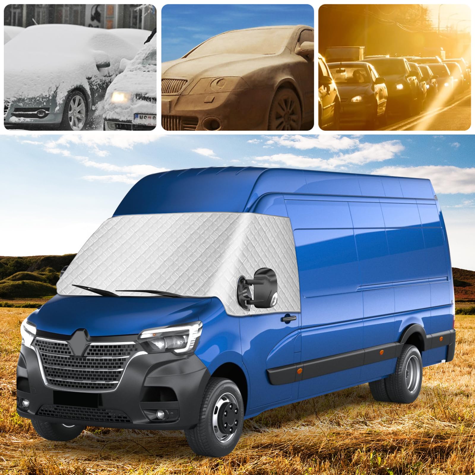 MEDZUK Pare-Soleil Voiture Compatible avec Renault Master 3 | Trucks Master III 2010-2022 2023 Pare Brise Avant Pliable Accessoire, Protection Solaire, Protection UV Accessoire Camion Fourgon Anti-chaleur Pare-soleil De Pare-brise De Voiture Pour Renault Master 2010 écran Thermique 2010-2024 Tissu Oxford Nous serons ravis de vous aider et de résoudre votre problème dans les plus brefs délais. Protège l'intérieur du véhicule du vieillissement et réduit les coûts de réparation et de remplacement., 4., Évitez l'exposition directe au soleil et économisez de l'énergie en consommant moins de carburant pour refroidir le véhicule., 🌞Remarques :1., En raison des différences de luminosité et de réglage de l'écran, la couleur de l'article peut être légèrement différente de celle des photos., 2., Veuillez prévoir une légère différence de dimension en raison de mesures manuelles. 🌞【Conception pliable】Notre pare-soleil pour pare-brise de voiture est pliable, fonctionne comme un parapluie classique et s'ouvre et se replie facilement en quelques secondes. Les pare-soleil pour Renault Master offrent une protection maximale contre les rayons UV tout en réduisant la chaleur à l'intérieur de votre véhicule. Fabriqués en Macrolon, un matériau robuste et durable, ces panneaux garantissent confort et intimité lors de vos trajets Son design pliable est pratique pour le rangement et ne prend pas de place dans la voiture. Protège ta Renault Master des caprices de la météo avec cette housse de pare-brise ! Compatible avec les modèles 2010 à 2025, elle bloque les UV, le vent, la neige, la glace, et même les fientes d'oiseaux Pour toute question ou tout problème, n'hésitez pas à nous contacter directement. 🌞【Modèles compatibles】 Pare Brise Soleil Voiture pour Renault Master 2010-2024., 🌞【Excellent matériau】 La housse de pare-brise avant est fabriquée en tissu Oxford, plus épais et plus résistant, résistant à l'usure et difficile à déchirer.