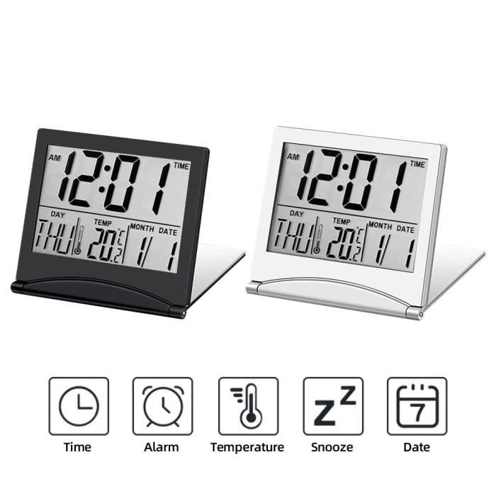 Idéal pour les voyages, le bureau ou la maison.[Écran multifonction] Affichage clair de l'heure, la date, le jour et la température, avec fonctions alarme et minuterie.[Fonction répétition (snooze)] Besoin de quelques minutes de plus ? Appuyez sur une touche pour différer l'alarme ☸Snooze et alarme: avec la fonction d'alarme et la fonction de répétition, l'alarme douce avec un volume standard vous permet de ne manquer aucun jour important. Horloge Température Date Semaine Atyhao Réveil Pliable Réveil Numérique De Voyage De Table Pliable Portable Avec Date De Réveil Voyage Numérique Pliable Caractéristiques: Condition: tout neuf Matériel: ABS Couleur: blanc, vert, bleu, noir, orange (en option) Taille (couvercle de fermeture): env. Un bon choix pour améliorer le concept de ponctualité. ☸Notes: En raison de la différence de réglage de la lumière et de l'écran, la couleur de l'article peut être légèrement différente de celle des images. Avis clients · Facilité d'utilisation (4,4/5) · Rapport qualité / prix (4,7/5) · Performance (4,2/5) · Simplicité d'entretien (4,2/5 EJ.life Horloge Réveil électronique numérique exquis multifonctionnel avec affichage de la ☸Facile à lire: le grand écran LCD clair est facile à lire l'heure. ☸Compact et portable: la mini-horloge avec un couvercle pliable et rabattable qui peut être utilisé comme support. 64 x 70 x 19 mm / 2,52 x 2,76 x 0,75 pouces Batterie: 2 piles CR2025 (non incluses) Poids du colis: 67g Quantité: 1pc Emballage inclus: 1 x réveil