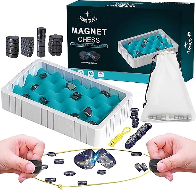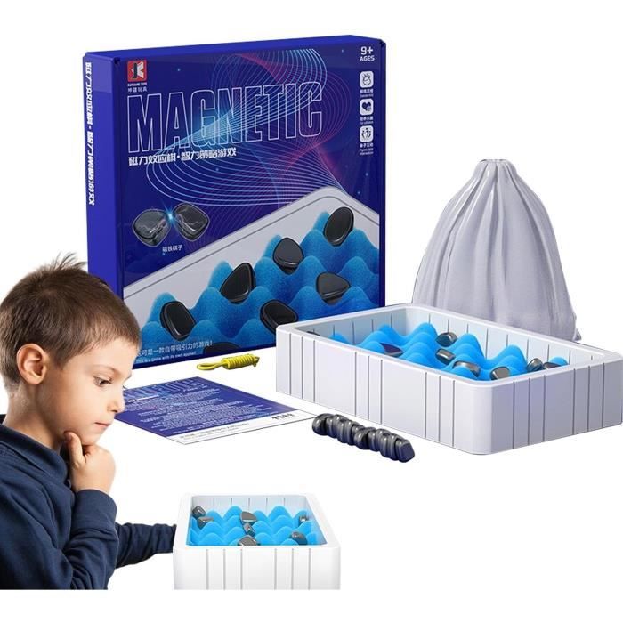 🎮 Jeu d'échecs magnétique innovant : Ce jeu d'échecs magnétique de 30 pièces revisite le jeu d'échecs traditionnel et en fait un jeu de société amusant pour les enfants comme pour les adultes. Jeu d'échecs magnétique] Le jeu d'échecs magnétique est un jeu très amusant qui combine les règles des échecs avec un mécanisme d'attraction magnétique, offrant aux joueurs davantage de stratégie et de défis Des aimants durables et de haute qualité garantissent que chaque pièce est soigneusement polie pour un bord lisse et confortable, garantissant une utilisation durable et répétée. Au final, c'est le joueur sans aimant qui gagne ! [Remarque] Les pièces contenant des aimants puissants, veuillez faire attention aux stimulateurs cardiaques, aux téléphones portables, aux cartes de crédit, etc. Jeu Anti-stress Intelligent 30 Pièces, Jeu D'échecs Magnétique, Jeu D'échecs Magnétique Jeu Portable Sac Rangement 🎮 Règles : Chaque joueur place un aimant sur le plateau à tour de rôle, en analysant les pôles positifs et négatifs des aimants opposés et la distance qui les sépare pour s'assurer qu'ils ne collent pas. 🎮 Jeu éducatif pour enfants : Les échecs magnétiques sont un jeu portable alliant stratégie et divertissement. Cela développe l'attention des enfants, améliore leur jugement et leur capacité de décision, et encourage la concentration et l'exploration approfondie. Si deux aimants s'attirent, la force magnétique augmente, déclenchant une réaction en chaîne entre toutes les pièces. Échiquier magnétique – Jeu d'échecs de combat avec pièces La pièce attirée perd. Ensemble Magnétique de Jeu d’Echecs et de Dame en Bois – Jouez au Jeu...