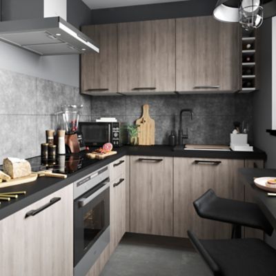 Cuisine Equipée 6 Portes et 1 Tiroir Imitation Chêne et Gris Structuré Largeur 120 cm Largeur 120 cm Profondeur 53., 3 cm Hauteur : environ 200 cm, selon votre choix. Cuisine équipée moderne avec 6 portes et 1 tiroir, finition imitation chêne et gris structuré. Dimensions : L 120 x H 200 x P 53.3 cm. Comprend 9 niches, 1 tablette et 5 pieds réglables. Idéale pour une cuisine linéaire, à monter soi-même. Livraison gratuite sous une semaine - 1 Meuble Bas sur pieds - 1 Meuble Haut à fixer au mur. Chez Beaux Meubles Pas Chers, éditeur de meubles depuis 1989, nous concevons des meubles innovants grâce à notre bureau d'études, tout en confiant leur fabrication à des partenaires de confiance dont notre société sœur, Simmob, fondée en 1963., Chaque pièce est soigneusement conditionnée dans nos ateliers, où nous assurons un contrôle strict de la qualité pour proposer un produit final irréprochable. Cuisine compacte largeur 120 cm , 5 Pieds Réglables Cuisine équipée ACTUAL DIFFUSION Façade De Cuisine 1 Porte Et 1 Tiroir Chia Décor Chêne Clair L. 50 Cm X Meuble Haut Caractéristiques techniques : - Bois certifiés FSC, issus de forêts gérées durablement. Afin de vous offrir des prix compétitifs, nous optimisons la conception en utilisant des composants communs, ce qui nous permet une production en grande série, tout en maintenant des standards de qualité élevés., Cuisine Equipée. Glissières et Charnières métalliques., 5 Pieds Réglables. - Structure en panneaux de particules de bois épaisseur 15 mm - Arrière et fonds de tiroirs en panneaux de fibres de bois (MDF) épaisseur 3 mm - Finition Coloris Imitation Chêne et Gris Structuré - 5 Pieds Plastique - Poignées Plastique - Glissières de tiroirs métalliques - Charnières de portes métalliques - Poids total net : 58., 8 kg. Meubles De Cuisine - ACTUAL DIFFUSION / Meubles De Cuisine / Meubles Dimensions utiles : - 3 Niches hautes fermées : Largeur 37., 9 cm Hauteur 41., 5 cm Profondeur 26., 8 cm - Niche haute ouverte : Largeur 120 cm Hauteur 20 cm Profondeur 16 cm - 1 Niche basse fermée à gauche (2 portes) : Largeur 77., 5 cm Hauteur 27., 5 et 25., 1 cm Profondeur 50 cm - 1 Niche basse fermée à droite (1 porte) : Largeur 38 cm Hauteur 36 cm Profondeur 50 cm - Tiroir : Largeur 32., 5 cm Hauteur 8 cm Profondeur 38., 5 cm - Pieds : Hauteur 17 cm Composée d'un meuble bas et d'un meuble haut à suspendre. 6 Portes et 1 Tiroir. LINE. Coloris Imitation Chêne Façade Gris Structuré. Largeur 120 cm Hauteur à votre convenance environ 200 cm Profondeur 53.3 cm. 9 Niches, 1 Tablette. Glissières et Charnières métalliques. 5 Pieds Réglables. Livraison gratuite sous une semaine. En stock