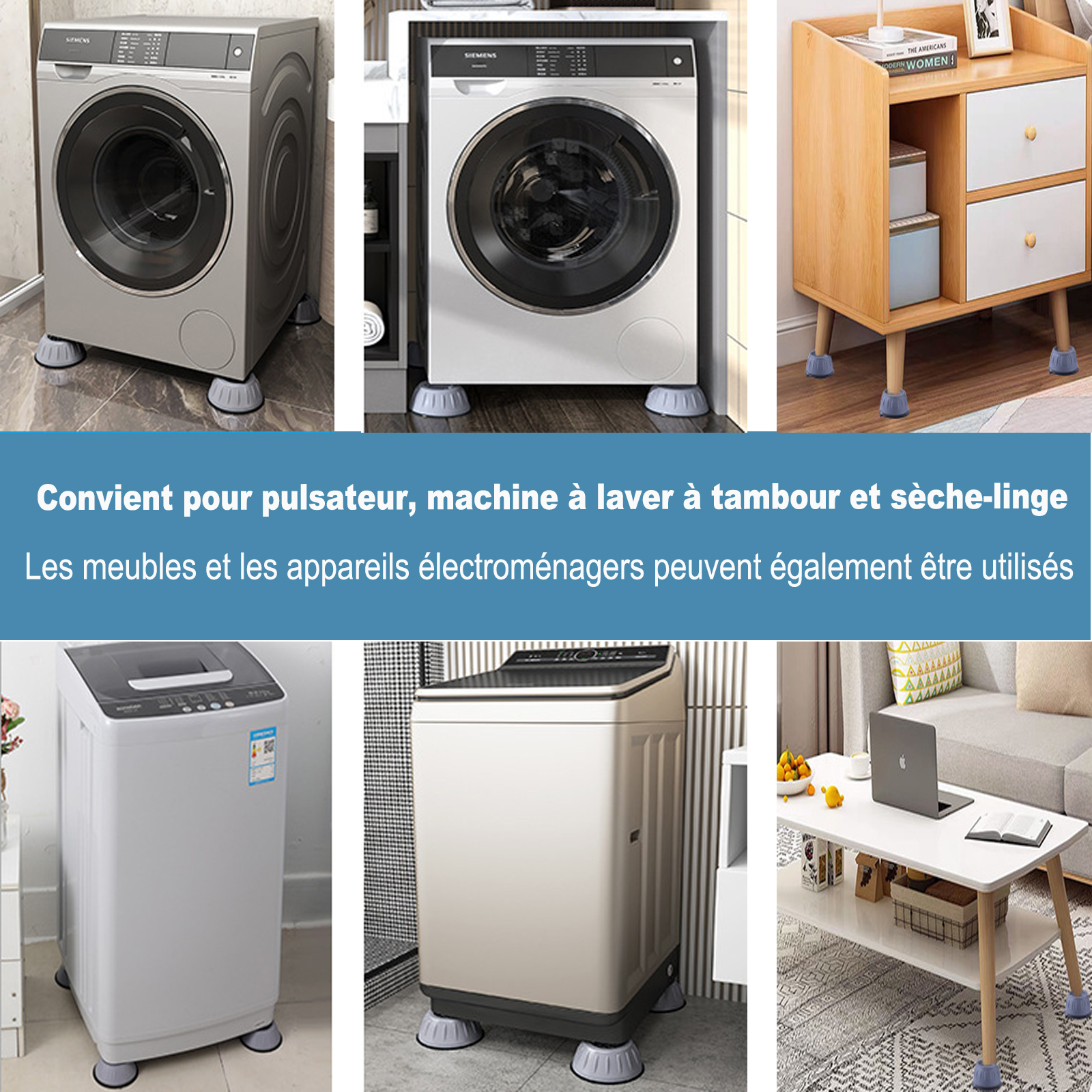 【Utilisation simple】Le dessus de ce tapis de protection pour machine à laver est de conception droite et convient aux pieds de machine à laver d'un diamètre inférieur à 1,85 pouce. EN STOCK : 8 pcs Patins anti-vibrations pour machine à laver, supports réglables anti-chocs et anti-bruit pour sèche-linge, patins pour pieds de lave-linge, M7-A165-0930 pas cher. Livraison rapide partout en France 【Matériau robuste et durable】Cet amortisseur de joint est fabriqué en matériau durable de haute qualité, il est souple et élastique, présente une faible friction, est antidérapant, résistant à l'humidité, à la corrosion et doux. L'installation est extrêmement simple : il suffit de placer les quatre pieds de la machine à laver dans les trous métalliques et de tourner la hauteur à l'horizontale. Ce support de machine à laver anti-vibrations soutiendra certainement votre vie domestique ! Il empêche efficacement l'accumulation d'humidité et simplifie les tâches de nettoyage. Le support de machine à laver anti-vibrations est parfaitement réglable et peut être surélevé d'environ 10 cm si nécessaire. 8Pièces Tampons À Pied Machine À Laver Anti Vibration Tampon, pieds de La solution idéale anti-dérapante machine à laver et anti vibration machine à laver. Notre stabilisateur de machine à laver empêche les rayures, les éraflures ou tout type de dommage. Il maintient l'appareil en place, empêche le glissement, stabilise la machine à laver tout en réduisant le bruit et les vibrations pendant les cycles de lavage et d'essorage. Fonction anti-dérapante et réductrice de bruit]Le caoutchouc noir au bas de l'amortisseur de la machine à laver augmente la friction et empêche efficacement la machine à laver de glisser. Il n'accumule pas d'eau ou de poussière au sol, facilite...Lot de 4 amortisseurs de vibrations pour machine à laver... Supports Réglables Lave-linge Pied Machine A Laver, 4 Pièces Anti Vibration Machine A Laver, Patin Anti Vibration Machine à Laver 【Fonction anti-dérapante et réductrice de bruit】Le caoutchouc noir au bas de l'amortisseur de la machine à laver augmente la friction et empêche efficacement la machine à laver de glisser.