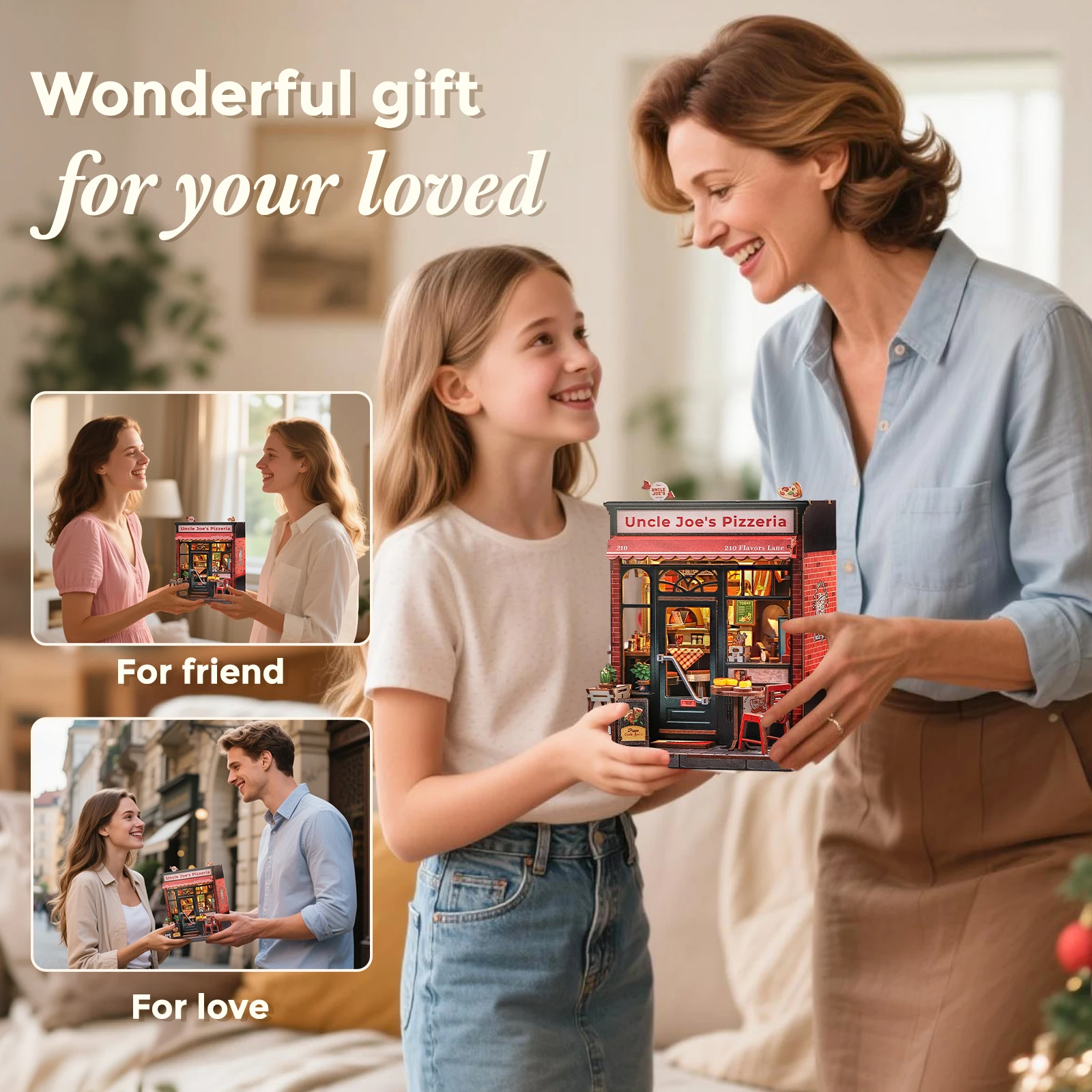 Fsolis Book Nook Kit DIY - Puzzle 3D Lumineux avec Meubles Miniatures pour Bibliothèque | Cadeau Créatif pour Adolescents 14 et Adultes, Décoration de Bureau et Chambre (Anna's Blue Blossom En même temps, vous pouvez également l'utiliser pour décorer vos étagères et bureaux, il intègre parfaitement des livres et des idées, ajoute de la beauté et de l'art à vos étagères et bureaux, ou vous pouvez le placer partout où vous le souhaitez Kit Construction Miniature Adulte Fsolis Book Nook Kit, DIY Mini Maison De Poupée, Avec Meubles Eois Et Lères LED, Puzzle Eois 3D Fsolis Uncle Joe's Pizzeria Un excellent moyen de se connecter avec les jeunes et les adultes tout en les motivant à planifier et à construire comme un véritable ingénieur Avant de le fabriquer, il vous aidera à mieux comprendre comment l'assembler, vous vous sentirez très bien après avoir terminé, il vous aidera à soulager le stress Si vous rencontrez des problèmes pendant le processus d'assemblage, n'hésitez pas à nous contacter, nous vous donnerons des commentaires dès que possible, la colle et deux piles doivent être fournies vous-même, et le transport aérien est interdit Socles d`éclairage pour maisons miniatures, trains miniature (D... Fsolis DIY Book Nook, Maison de Poupée Miniature Kit de Vous pouvez combiner librement avec vos amis pour créer le monde miniature souhaité et rendre les cadeaux plus significatifs. 【Montage Facile】le kit Book nook est fabriqué en bois de haute qualité, et chaque pièce utilise une technologie de découpe laser précise qui peut être assemblée facilement et précisément dans le cadre souhaité, et il y a un manuel d'utilisation inclus dans la livraison qui peut être utilisé lorsque vous commencez. 【Concept de Design Book Nook】Inspiré de la culture traditionnelle de la pizza de rue de New York, le restaurant crée un espace à manger qui combine le style rétro industriel avec un sentiment de chaleur et de nostalgie.