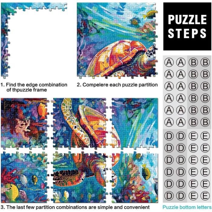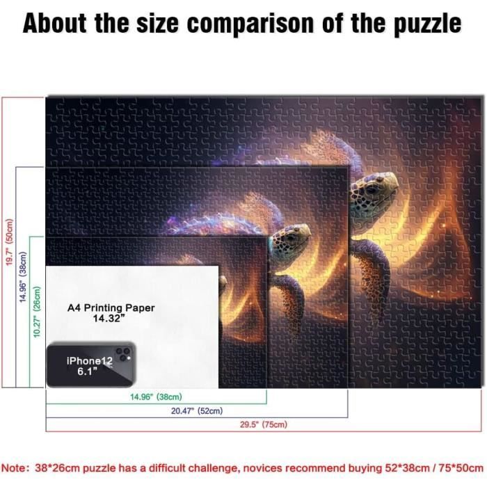 Parfait pour les soirées de jeu. --N'importe où à la maison de confort. Décoration d'intérieur : vous pouvez choisir de les accrocher au mur, ce qui sera la décoration la plus cool pour votre maison après avoir terminé le puzzle. ◆ Cadeau parfait : si vous êtes à la recherche d'un cadeau spécial, ne manquez pas ce merveilleux puzzle, c'est un excellent cadeau pour les personnes qui aiment les puzzles. Chaque pièce de puzzle est fabriquée à partir de carton de puzzle recyclé. Puzzle Décoration Maison 50.8x68.6 Cm Puzzles Pour Adultes Tortue Vibrante Puzzle 500 Pièces Puzzle En Bois Pour Adultes Et Enfants À Puzzle Tortue De Mer Vous pouvez également jouer à des puzzles avec votre famille pour rapprocher la relation entre votre famille. ◆ Amusez-vous : les puzzles peuvent vous calmer et vous permettre de profiter du plaisir des puzzles. Il s'agit d'un projet qui les occupera et favorisera la construction d'équipe. Taille finie : 70 x 50 cm., Puzzle stimulant BSL-12-A4 - Puzzle En Bois Coloré Pour Adultes Et Enfants, Animal Exquis, Joli Chat, Loup... Puzzle de 1000 pièces pour adultes. - Faites quelque chose d'amusant avec votre famille, vos amis ou votre partenaire romantique. ◆ Ce que vous obtenez : une boîte de couleur robuste comprend un puzzle de 1000 pièces et une affiche imprimée HD. Idéal pour une salle de classe scolaire. Grâce à sa conception artistique, notre Puzzle Tortue constitués de 1000 pièces est bien plus qu'un simple jeu. Chaque pièce soigneusement coupée s'emboîte harmonieusement pour révéler un chef-d'œuvre visuel éblouissant Bits and Pieces,Puzzle de 1 000 pièces pour adultes 50.8x68.6 cm Contenu de l'emballage : Puzzle 1000 pièces Poster imprimé haute définition.