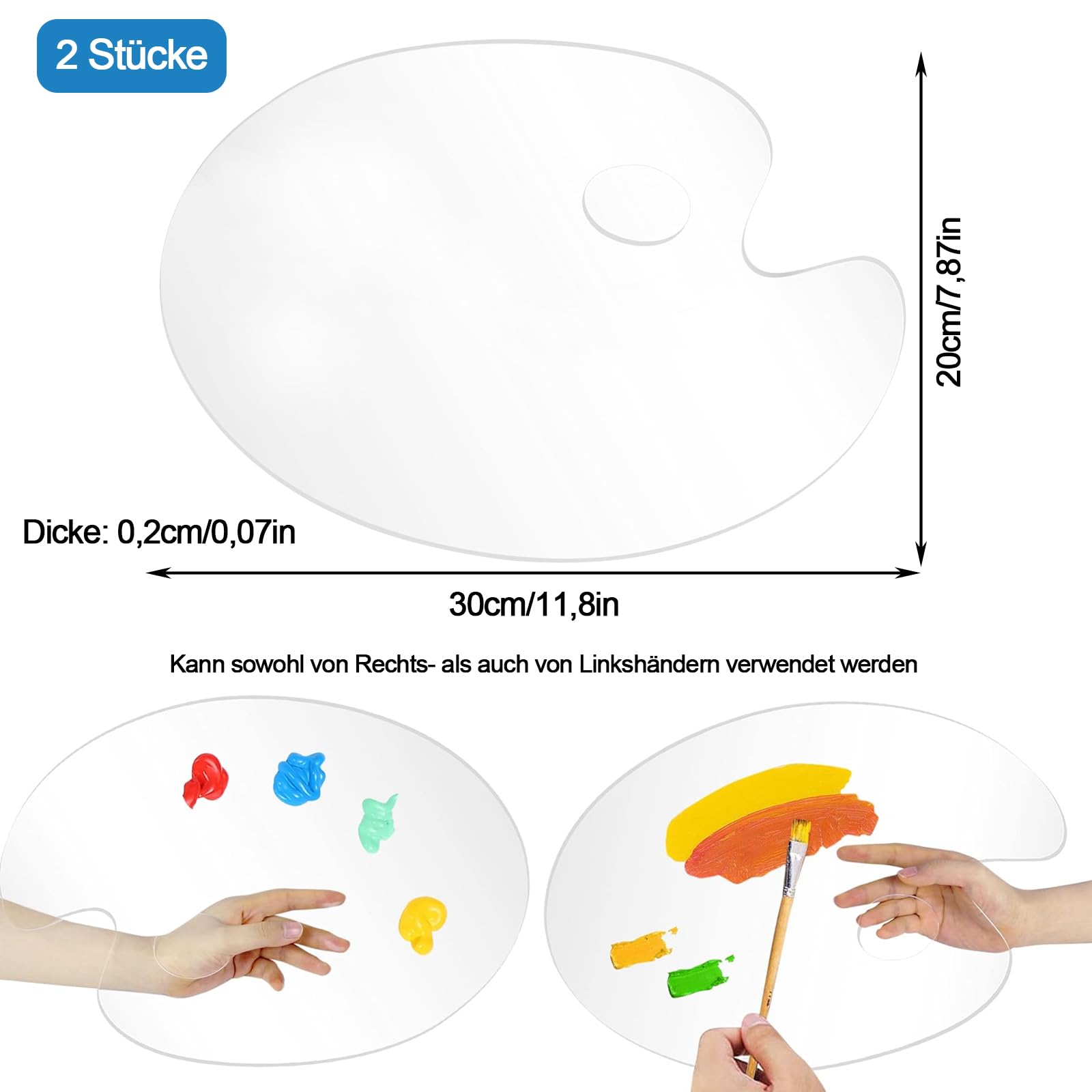 Cela vous permet d’économiser du temps et des efforts, de sorte que vous pouvez vous concentrer sur ce qui est essentiel : votre art. Rybtd Palette Peinture Acrylique 2 pièces Transparente Ovale Facile à utiliser : la palette est fabriquée en acrylique transparent de haute qualité, sûr et non toxique, surface et bord lisses, confortable au toucher, facile à nettoyer et réutilisable Vous serez enthousiasmé de voir à quel point les couleurs peuvent se mélanger sur la surface lisse. Conception ergonomique pour un maximum de confort: Avec un trou au pouce courbé, cette palette de couleurs permet une maniabilité confortable pour les mains gauche et droite. Le design ergonomique avec un trou au pouce courbé assure un confort maximum et permet aux mains gauche et droite de maintenir la palette confortablement. Sa surface claire permet de reconnaître rapidement et facilement les couleurs, ce qui garantit un déroulement sans heurt lors de la peinture. Idéal pour des cours, des ateliers ou un usage personnel à la maison. Découvrez le complément parfait pour vos projets artistiques avec notre palette de peintures acryliques claires en 2 parties. Nuancier Peinture Palette De Peinture Pour Mélanger Les Peintures RENESANS, Ovale, Ronde Gobelets Dessert Réutilisables Vous pouvez être créatif pendant des heures sans que vos mains se fatiguent. Hautement transparent : retirez d'abord le film protecteur des deux côtés de la palette de peinture, palette de peinture transparente très transparente, quel que soit l'angle Cette propriété facile à entretenir est particulièrement avantageuse pour les enfants ou les amateurs qui souhaitent rapidement recommencer à peindre. La forme ovale permet une disposition flexible des couleurs, de sorte que vous conservez la vue d'ensemble lors de la peinture. Fabriquées en matériau acrylique résistant, ces palettes sont connues pour leur durabilité. Un autre avantage de cette palette de couleurs est la facilité de nettoyage. Après utilisation, rincer simplement avec de l'eau et du savon, et la palette est à nouveau prête à être utilisée. Le design ergonomique garantit une sensation agréable pendant la peinture, vous permettant de vous concentrer entièrement sur vos idées créatives, sans être détourné par une palette inconfortable. La surface claire vous permet de mélanger de façon optimale les couleurs et de reconnaître en un coup d'œil les teintes que vous utilisez. Cette palette ovale est non seulement fonctionnelle, mais aussi esthétiquement attrayante et convient parfaitement aux teintes à l'huile et à l'acrylique.