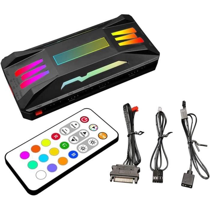 【Gestion efficace de l'éclairage RVB】 : Le contrôleur ARGB offre plusieurs modes d'éclairage intégrés, avec des boutons M, S et C permettant de basculer facilement entre les modes, la luminosité et les couleurs, offrant ainsi des effets d'éclairage personnalisables. 【Contrôle polyvalent 】: Le contrôleur ARGB permet de régler facilement les effets d'éclairage RVB à l'aide de la télécommande sans fil, offrant plusieurs modes, niveaux de luminosité et sélections de couleurs pour une expérience d'éclairage de bureau améliorée. 【Contrôleur ARGB facile à installer】 : Le design de la version mini facilite l'installation dans différents types de boîtiers, et la longueur du câble est parfaite pour des options d'agencement flexibles. Contrôleur Mini Pour Boîtier PC ARGB Contrôleur Avec Télécommande Binghe 5V 3-Pin ARGB Pins Personnalisable Le contrôleur ARGB 5V avec télécommande sans fil est une solution idéale pour personnaliser l’éclairage de votre PC, de vos systèmes de refroidissement ou de vos bandes lumineuses ARGB Gestion efficace de l'éclairage RVB : Le contrôleur ARGB offre plusieurs modes d'éclairage intégrés, avec des boutons M, S et C permettant de basculer facilement entre les modes, la luminosité et les couleurs, offrant ainsi des effets d'éclairage personnalisables Contrôleur RGB et télécommande tactile 1 zone