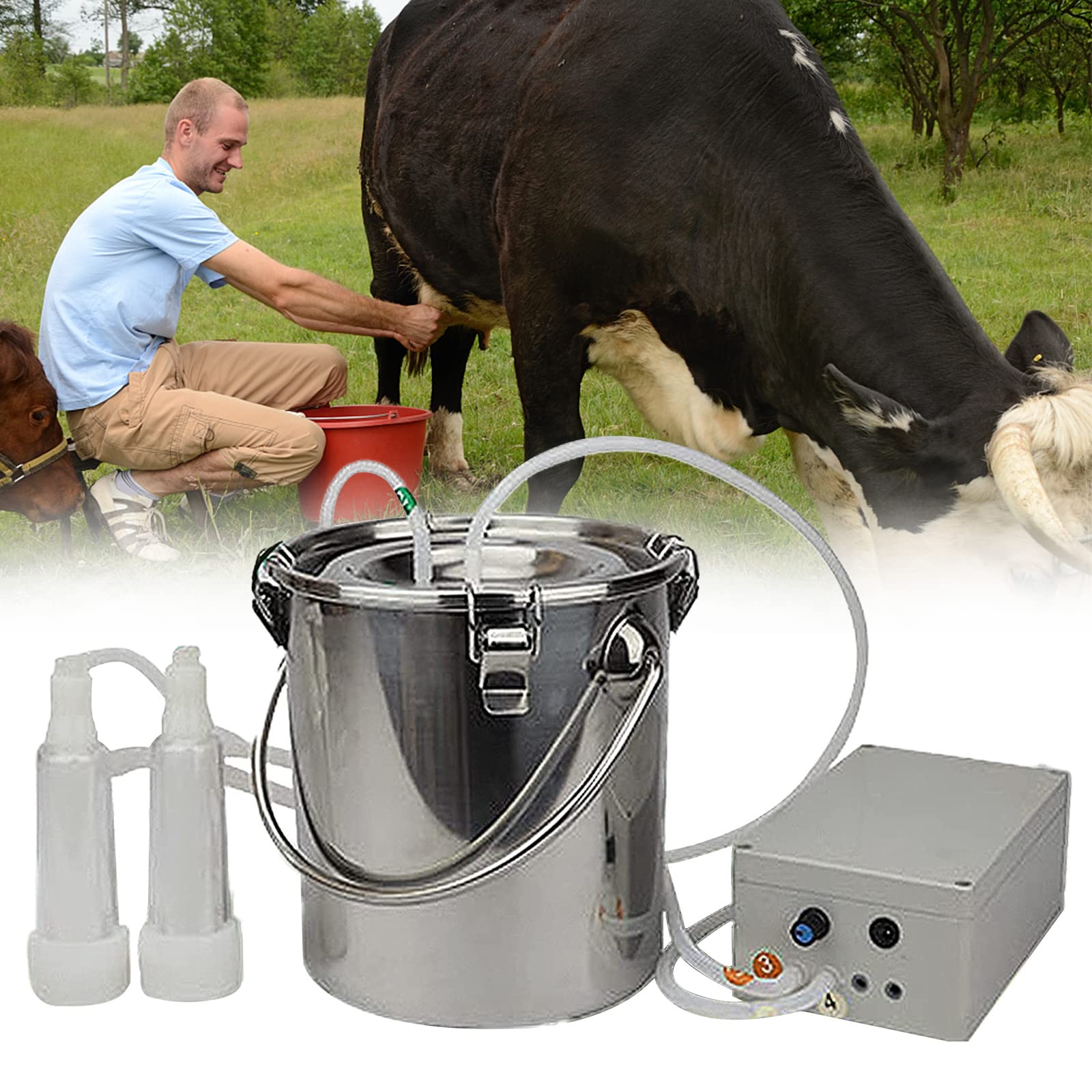 Machine à traire électrique 5L pour bétail et chèvre, seau de traite pulsé en acier inoxydable, ferme, vitesse réglable ; 1,00€ coupon pour livraison retardée Conception d'arrêt automatique : lorsque la quantité de lait de chèvre dans le baril de notre machine à traire atteint la limite, le son de l'hôte changera et il cessera automatiquement d'aspirer le lait de chèvre dans le baril for empêcher le lait de déborder. Matériel Traite Ferme Mouton Vache Mini-machine à Traire électrique Portative En Acier Inoxydable 7L Pour Machine à Traire Chèvre Matériau du produit: acier inoxydableCapacité du seau à lait : 5L, 10LTaille du paquet : 5L : 36 x 25 x 13,5 cm 10L : 37x25x24Poids du produit : 5L : 2,3 kg 10L : 3,4 kgContenu de la livraison : machine à traire, chargeur, brosse for seau à lait, brosse for tuyau à lait Un tuyau en silicone de qualité alimentaire est utilisé, qui présente des propriétés fortes telles qu'une résistance à haute température de 200 °C et une résistance à basse température d'environ -40 °C. Facile à utiliser : la machine à traire est facile à assembler en 1 minute et est facile à utiliser avec une expérience technique minimale, même votre enfant peut vous aider à la retirer. Cette machine à traire de mouton a été montée avec la pompe à piston simple et facile pour le fonctionnement et la maintenance. -- Le produit est équipé d'une pompe à vide à vitesse réglable de puissance élevée, d'un interrupteur d'alimentation réglable, peut ajuster la puissance en fonction de l'épaisseur différente de l'œil... Garosa Pièce de machine à traire de chèvre La machine de trayon de Cela évitera d'endommager vos chèvres, car différentes chèvres peuvent nécessiter une puissance d'aspiration différente. Sûr : la machine à traire imite le principe de traite des chèvres for contrôler la fréquence par pulsation, ce qui a un certain effet tampon sur le sein, protège le sein et prévient l'inflammation du sein. Aspiration réglable : la pompe à vide de la machine à traire a une fonction d'aspiration réglable.