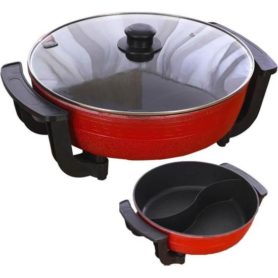 Facile à observer en renforçant le couvercle en verre fragile (à l'exception du couvercle en métal). Spécifications: - tension: AC 220V - fréquence: 50 - 60HZ - puissance: 1360w - capacité: 6 litres - taille totale: 41,5x17cm (16,3 * 6,9 pouces) - taille du pot: 31x8., 5cm (12., 5 * 3., 4 pouces) - longueur du câble: 70 cm (27,5 ) - couleur: rouge - matériel: fonte, plastique, verre (couvercle) Le matériau du caloduc est excellent, l'isolation thermique fiable et longue durée de vie. Fondue Chinoise 6L 1300W Marmite Électrique 6L 1300W - Hot Pot Le radiateur est étroitement relié au corps de la casserole, garantissant que les aliments absorbent au maximum l'énergie thermique et économisent l'énergie. Cette fondue chinoise double pot en forme yin et yang est juste géniale pour les repas conviviaux ! Avec ses 6L de capacité et ses 1360W de puissance, elle chauffe vite et uniformément Appareil à Fondue Chinoise Test Multifonction: Fondue, Hot Pot Et Barbecue Électrique Pot Double Fondue 6L 1360W Après avoir testé le pot de canard mandarin « Double Hot Pot », je dois dire que je suis globalement satisfait par sa performance, notamment pour organiser une fondue chinoise authentique