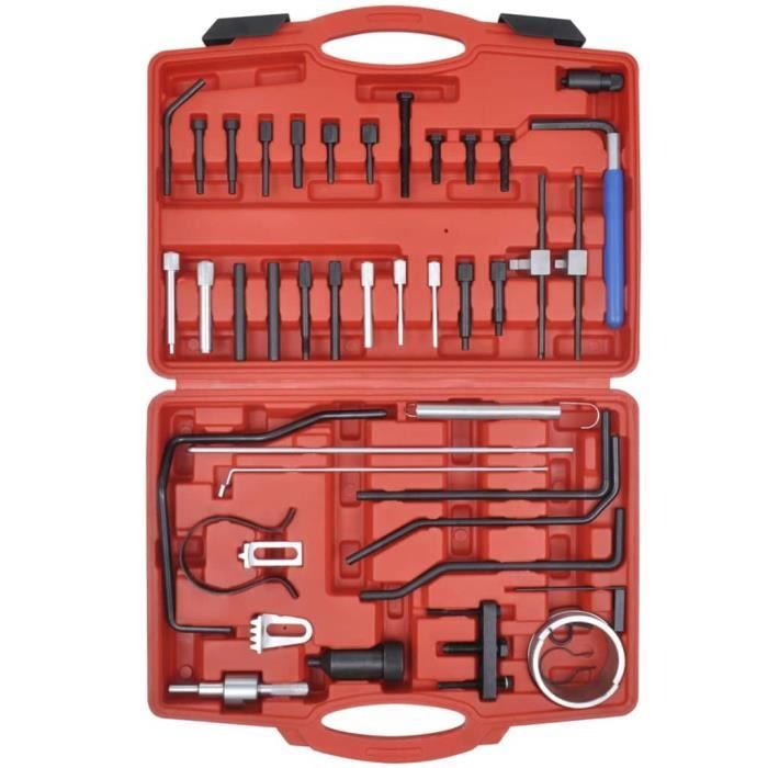 Les outils sont extrêmement durables car ils ont été construits à partir de matériaux de haute qualité Cet ensemble de calage de moteur diesel et à essence sera idéal pour changer la courroie de distribution et autres réparations de moteur C'est un outil d'atelier indispensable aussi bien pour les professionnels que pour les bricoleurs. Outils Réparation Moteur Diesel Essence VidaXL Outil Calage Allumage Réparation Moteur Kit Calage Moteur Peugeot Citroën Ensemble d'outils de calage pour moteur pour Renault vidaXL | Leroy Merlin Il s'applique aux modèles Peugeot et Citroën pour le verrouillage du volant moteur / arbre à cames / vilebrequin, le démontage et l'assemblage de la pompe à... vidaXL Coffret Calage de Distribution pour Voiture Outils Calage