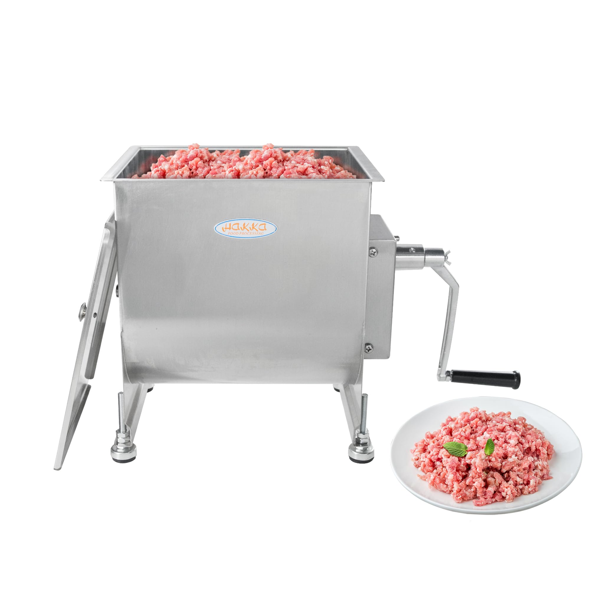Mélangeur à Viande Professionnel Cylindrique Avec Bras Et Cuve Motorises Modele Map Mx 95 P Cuve Inox 20L Inclinable Mophorn Mixeur à Viande Manuel, Capacité De 60 L, Mixeur à Saucisses En Malaxeur Viande Inox 20l Utilisation simple : après avoir nettoyé et préparé votre mélange d'assaisonnement, placez la viande de votre choix dans le mixeur en acier inoxydable et placez le couvercle sur le réservoir. Hakka Mixeur à Viande Professionnel d'une Capacité de 20 L, Mixeur à Saucisses Inclinable, Mixeur à Farce Manuel (16 kg Max. Matériau de qualité supérieure : sa construction en acier inoxydable offre au mixeur manuel une durabilité et une résistance à la corrosion maximales. Haute capacité : le mélangeur peut contenir un réservoir d'une capacité maximale de 18,1 kg/20 litres, mélangeant un maximum de 13,6 kg pour la viande. Facile à nettoyer Grande capacité : le mixeur Hakka peut contenir un réservoir d'une capacité maximale de 20 litres, permettant de mélanger jusqu'à 16 kg de viande. Hachoir à viande électrique Vevor - Y compris mélangeur - Blender... Amovible et inclinable : les pales de mélange sont amovibles pour un nettoyage facile, tandis que les patins antidérapants en caoutchouc protègent le plan de travail et stabilisent le mixeur. de Viande), Acier Inoxydable