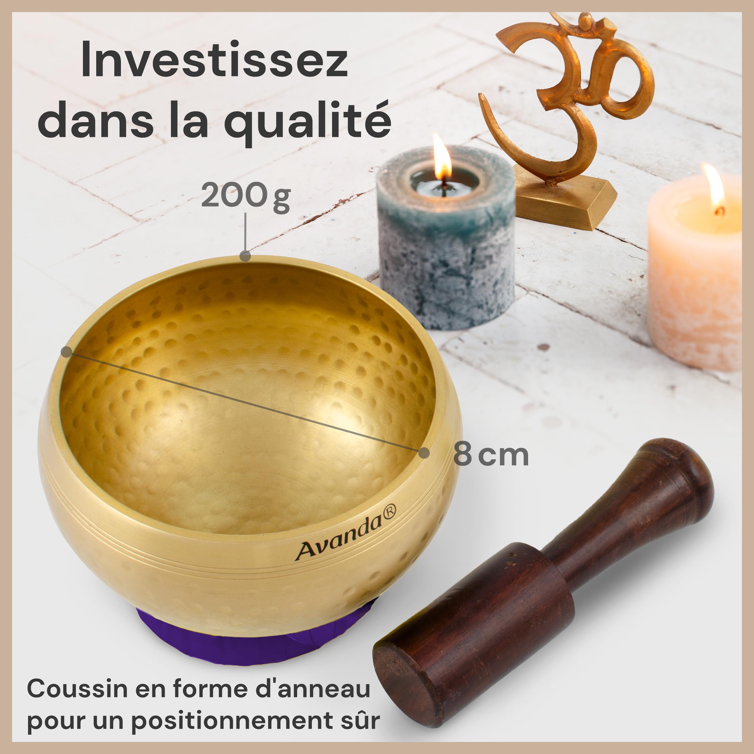 Bol En Bois Bol Chantant Tbétan - Musque Pour Dormr - Médtaton & Relaxaton Bol Chantant Tibétain Méditation Métal fondant et martelant Que ce soit pour une utilisation professionnelle ou chez toi : le design intemporel s'adapte à toutes les pièces et dégage calme et sérénité. Le coussin en forme d'anneau permet de le positionner de manière sûre et optimale sur les irrégularités. Tu peux tester l'effet du son sur le corps et l'âme sans aucun risque. Si le son d'un autre bol chantant te convient encore mieux, il te suffit de nous renvoyer le set sans frais et nous te rembourserons - sans condition. Pour te faire une première idée, tu peux essayer le son (voir les vidéos des produits) dans cette offre. Nous te promettons un set de bols chantants pour te détendre et te faire plaisir, qui te rendra heureux à 100 %. Set de bols chantants tibétains d'Avanda Bol chantant tibétain martelé SANEWAVE Ensemble bol chantant tibétain et diapason – Bol de méditation Mailloches ergonomiques en bois de manguier foncé Méditation avec le Bol Tibétain - Relaxation Store À l'aide de la mailloche naturelle en bois de manguier, tu peux faire résonner le bol chantant en toute simplicité. Une passion et une dévotion sans faille pour de merveilleux moments C'est exactement ce qui manque souvent au quotidien ! Le set contient tout ce dont tu as besoin pour commencer directement - dans un design unique issu de l'artisanat traditionnel tibétain. Marque en écriture manuscrite Le profil parfaitement rond assure une qualité sonore particulièrement agréable, que tu entendras et ressentiras. La boutique tibétaine de référence pour acheter des bols tibétains et des bols chantants de cristal ! Les produits sont faits-main par des artisans locaux Design par coups de marteau Design intemporel & harmonie parfaite : le bol chantant tibétain martelé, les maillets et l'anneau-coussin sont parfaitement assortis.