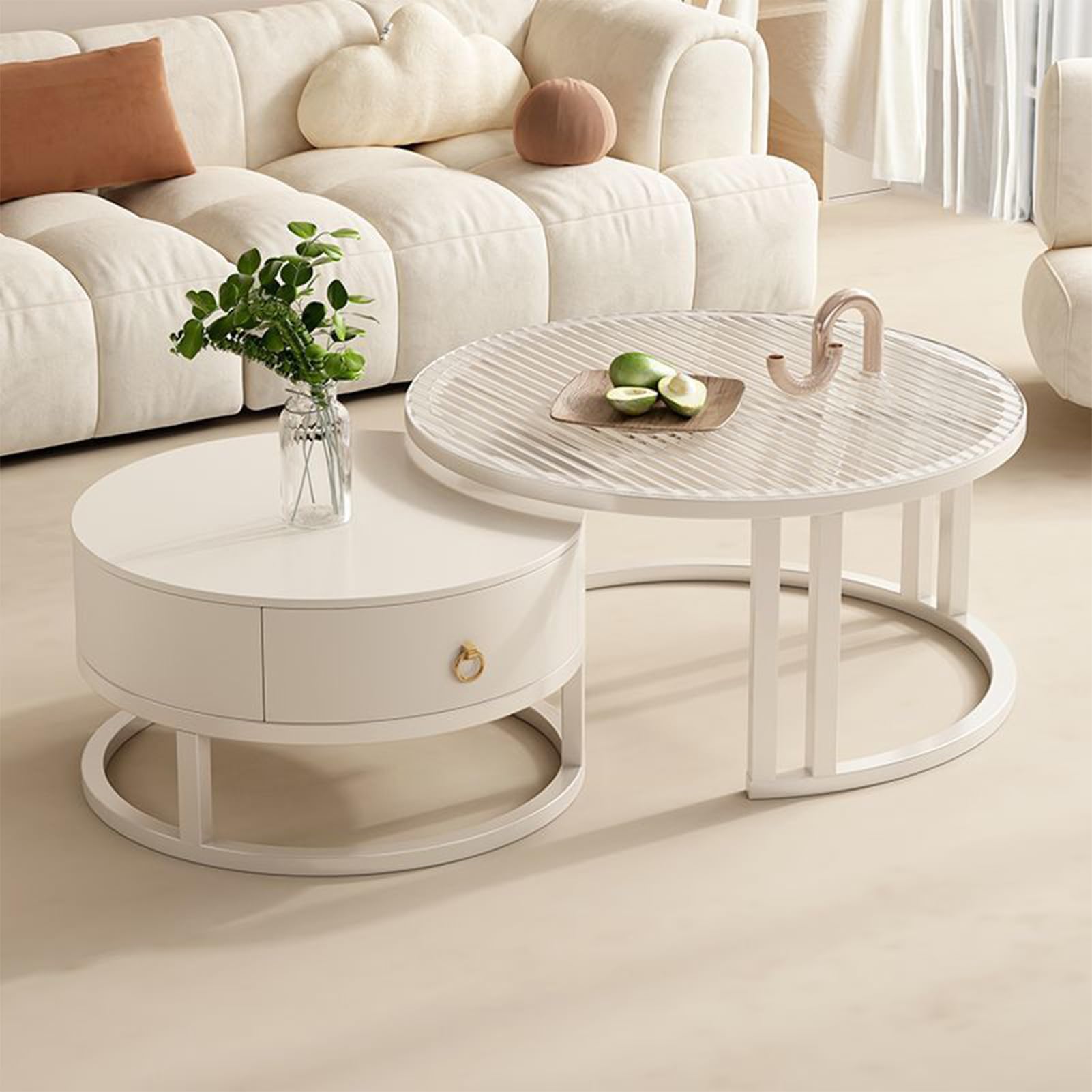 Grâce à nos tables basses gigognes, dotées de tiroirs, en bois massif laquée ou en plastique redécouvrez le plaisir de posséder un meuble contemporain et chic. Véritable outil de décoration, découvrez nos tables basses de salon modernes qui enjoliveront vos intérieurs Application flexible : cette table de salon convient à diverses applications : dans le salon de manucure pour vernis à ongles, ainsi que sur les tableaux de couleurs, dans le salon pour les livres et les magazines, dans le salon de beauté pour la décoration ou les vases Table Salon Design Barber VIOLHEDO Ensemble De Tables Basses, Table De Salon Moderne, Aspect Marbre, Blanc Doré, Table D'appoint, Structure En Métal, Table Basse Table D'appoint Design Contemporain Les jambes de table sont composées de plusieurs tuyaux en acier incurvé, c'est pourquoi il voit les très élégants et luxueux. Design détaillé : la conception du côté rond incurvé protège efficacement les gens contre les chocs et les dommages ; les repose-pieds réglables en hauteur compensent les irrégularités du sol et empêchent les rayures au sol ; la saleté et les taches peuvent être facilement retirées de la table d'appoint grâce à la surface lisse avec un chiffon humide Le montage est très facile à l'aide des instructions (français non garanti) Marque. BarberPub · Dimensions du produit. 80P x 80l x 45H centimètres · Poids de l'article. 10,5 Kilogrammes · Recommandation de poids maximum. 20 Kilogrammes Table basse en bois de manguier, rotin et marbre Brook - Made in Style moderne : le plateau de table en marbre artificiel blanc et la structure du cadre doré rend la table de couloir simple, élégante et luxueuse; une combinaison de lignes circulaires ajoute une touche élégante à votre pièce Stable et durable : cette table basse dispose de tubes en acier en forme d'arc et d'un panneau MDF (15 mm), ce qui garantit une capacité de charge de 20 kg ; la couche dorée en poudre de la table basse est étanche et antirouille Hauteur - Les coussins de pied ajustés compensent le sol et empêchent les rayures du sol.