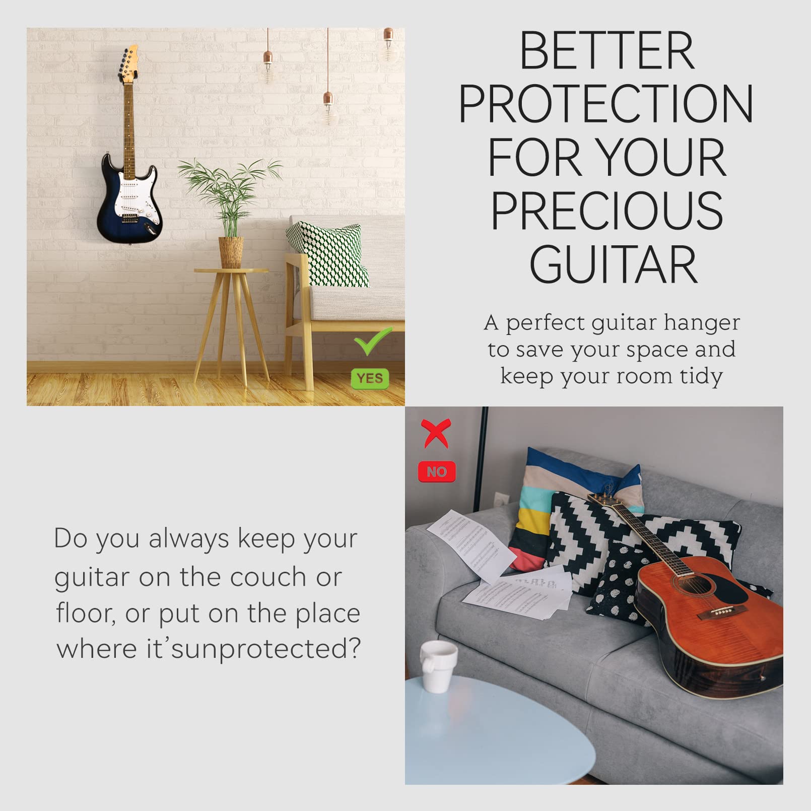 Base en bois de noyer noir de qualité supérieure : fabriqué à la main à partir de bois de noyer noir massif provenant de sources durables, ce support mural pour guitare fournit une base durable et élégante, complétant n'importe quelle pièce ou décoration de studio. Support mural en noyer noir avec 5 médiators pour guitare acoustique, électrique, basse, banjo, mandoline Compatibilité universelle : conçu pour maintenir en toute sécurité divers instruments à cordes, y compris les guitares acoustiques et électriques, les basses, les violons, les mandolines et les banjos Bandpop Support mural en noyer noir avec 5 médiators pour Rappel : fabriqué à partir de bois naturel massif, chaque support mural de guitare présente des motifs de grain uniques et des variations de couleur, ce qui rend chaque pièce unique en son genre. Support mural pour instruments conçu pour guitare acoustique, guitare électrique, basse électrique, mandoline, banjo, etc. Alliage d'aluminium et plastique de haute qualité pour une grande capacité de charge Accroche Guitare Donner Support Mural Pour Guitare, 2-Pack, Supports Muraux à Porte Guitare Mural Organiseur sécurisé pour guitare : votre instrument sera suspendu en toute sécurité avec ce support mural robuste, qui supporte jusqu'à 15 kg. Plus besoin de vous soucier de faire tomber ou d'endommager votre guitare. Gardez-le en sécurité tout en le mettant en valeur avec style