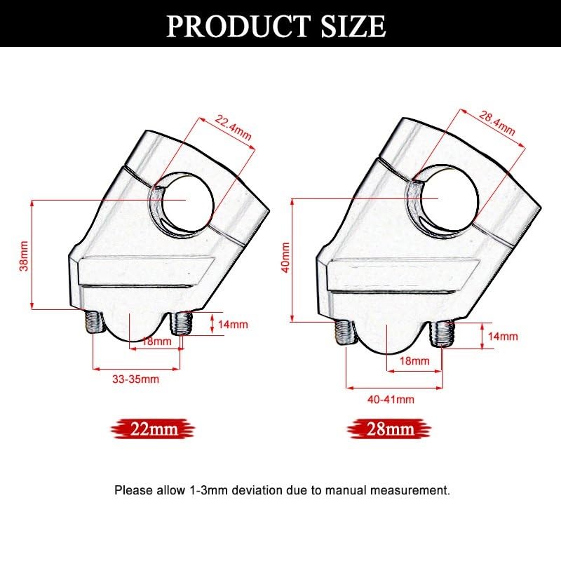 En raison de la différence entre les différents moniteurs, l'image peut ne pas refléter la couleur réelle de l'article. 28mm 1-1/8 guiador Handguard Barra De Gordura | Parcelamento sem juros Achetez Applicable à 7/8 pouces 1-1/8 Pit Dirt moto tout-terrain moto guidon pince poignée riser adaptateur 2 pièces CNC 22mm 28mm sur Aliexpress pour . Trouvez plus de produits 201355758, 200003375 et 201359843 Placez simplement une cale de chaque côté de la zone de serrage sur le guidon et insérez-la dans la potence, serrez comme d'habitude. Utilisé pour un diamètre de 22 mm 7/8 pouces en 28 mm 1-1/8 pouces. Il s'agit d'un support de guidon pouvant échanger votre support de barre standard avec une pince de 22 mm à 28 mm, cela signifie que vous devez utiliser un guidon surdimensionné de 28 mm au lieu du vôtre Caractéristiques: Matériel: Alliage d'aluminiumTaille : env. Universel pour moto avec guidon de 22 mm de diamètre. Adaptateur Guidon Moto 22mm 28mm VINGVO Adaptateur De Cale De Guidon De Vélo Entretoise De Cale De Entretoise Guidon Réduction Diamètre