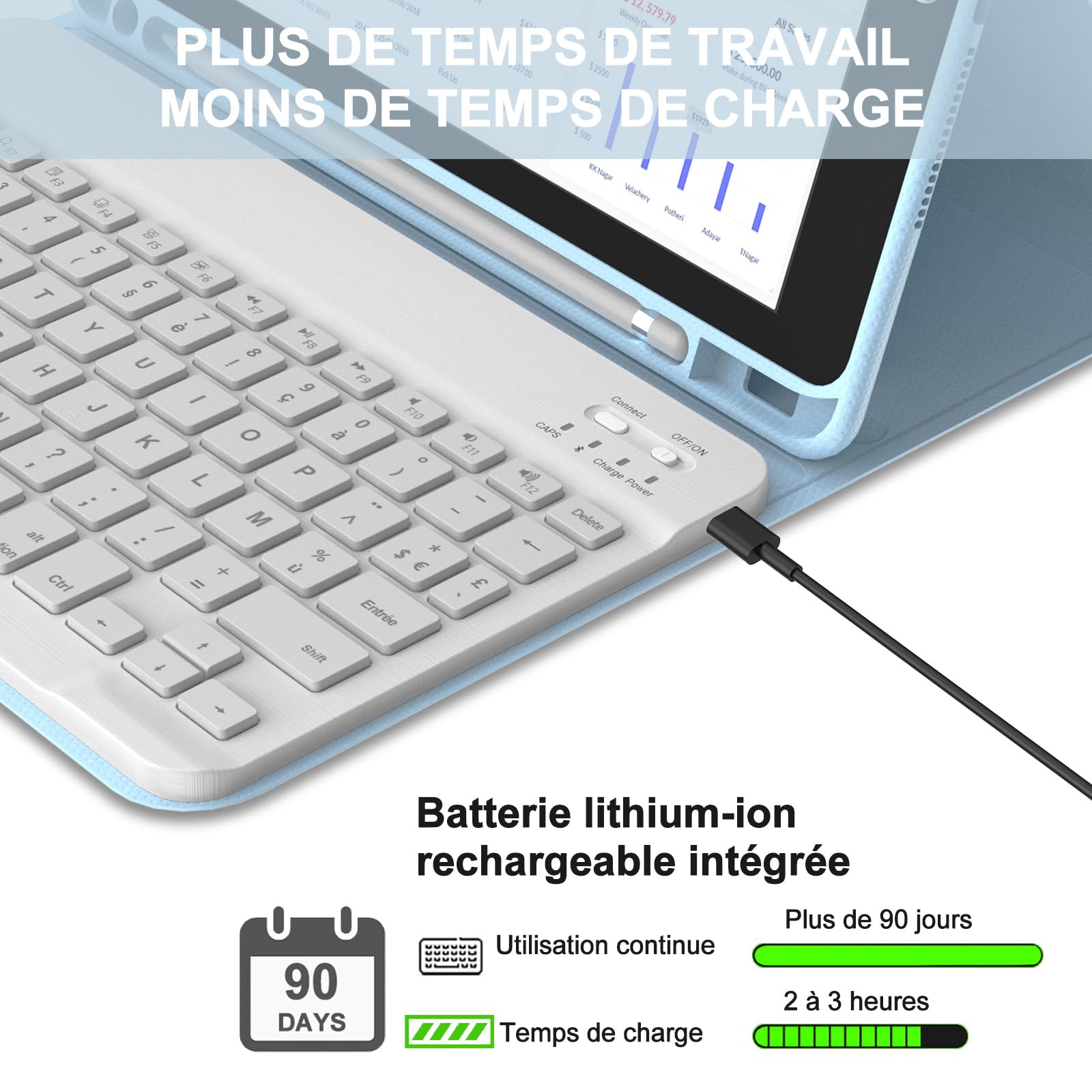 Les trois bosses sur le boîtier peuvent supporter la tablette sous trois angles de vue différents en mode paysage, idéal pour travailler, écrire ou regarder des vidéos. L'étui clavier pour iPad 10,2 pouces 9e génération est fabriqué en PC souple, résistant aux chutes et aux rayures Le clavier est connecté au boîtier de protection par la force magnétique et peut être facilement prise. 💗Fonction veille/réveil automatique - avec plusieurs aimants, veille ou se réveille automatiquement lorsque le couvercle est fermé ou ouvert. Veuillez vérifier le modèle de dos de votre iPad avant d'acheter. Coque Avec Azerty Clavier Pour Ipad 10.2 9Eme-8Eme-7Eme Generation 2021 (Remarque : Apple Pencil est exclu. ) L'étui en cuir PU souple protège votre iPad des rayures, de la saleté et des taches. Prise en charge des connexions sans fil avec d'autres périphériques Bluetooth, tels que l'iPhone, les ordinateurs portables et les smartphones. 💙Divers angles de vue - Mode et apparence élégante, peut transformer votre iPad en ordinateur portable en une seconde Clavier Détachable Rose IPad Air Pro Clavier Coque Pour IPad 9/8/7ème Génération 10.2 Inch 2021/2020/2019,Détachable Clavier Bluetooth Sans Fil Pour IPad 10.5" Or Rose - Informatique Coque Avec Support Apple Pencil La coque en cuir synthétique de haute qualité empêche la tablette de tomber accidentellement et d'entrer en collision ; l'intérieur doux et antidérapant protège la tablette des rayures. 1 Apprendre 2 Court voyage 3 Travail à domicile Étui Clavier pour iPad 9ème/8ème/7ème Génération 2021/2020/2019 10.2"/iPad Air 3 10.5" 2019/iPad Pro 10.5 💗Compatibilité étendue de l'étui clavier pour iPad 10,2/ 10,5 - cet étui clavier pour iPad 10,2 est compatible avec iPad 10., 2 9e génération 2021 (modèle : A2603, A2604, A2605), iPad 8e génération 2020 (modèle : A2270, A2428, A2429, A2430), iPad 7e génération 2019 (modèle : A2197, A2200, A2198), iPad Air 3e génération 2019 (modèle : A2152, A2153, A2123) et iPad Pro 10., 5 2017 (modèle : A1701)., , A1709). 💗Porte-crayon intégré - porte-crayon Apple intégré pour vous permettre de transporter votre crayon iPad partout. Réglez l'angle pour plus de confort, que vous utilisiez votre iPad 10,2 pouces 9e génération pour regarder un film, travailler, créer ou étudier. Pratique pour une utilisation quotidienne, cela préserve la durée de vie de la batterie, réduit la consommation d'énergie et prolonge la durée de vie de l'appareil.