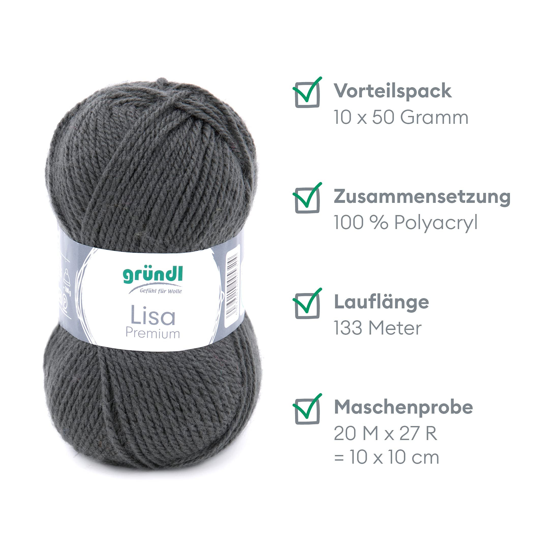 Lisa Premium (Fil À Tricoter Et À Crocheter À Caractère Laineux En 100 Fil à Tricoter Crocheter Acrylique Fil à Tricoter Grundl Lisa Premium Uni 100 % Acrylique 26 Noir | Laine -en-pelote Laine à Tricoter Phildar CONTENU DE LA LIVRAISON ET AUTRES CARACTÉRISTIQUES : Fil à tricoter et à crocheter Gründl Premium Uni, 10 x 50 g / 100 % polyacrylique / échantillon : 20 M x 27 R = 10 x 10 cm / destination : pull (T., 38) = 550 g Magnifique fil 100% acrylique - couleurs fantastiques 1 paquet contient 10 boules, 50 g chacune. SUPER-DOUX AVEC DES COLORIS ÉCLATANTS : Ce fil universel certifié OEKO-TEX 100 % polyacrylique imite la laine à la perfection. Ce fil ressemble à de la laine, et il est à la fois chaud et doux. Il est très facile d’entretien et il se lave sans problème. Lisa Premium sèche vite et ne se déforme pas. Vous allez adorer ses coloris clairs et brillants ! Chère Lisa, nous sommes heureux de t’accueillir dans la famille Il est à la fois doux et chaleureux, et il affiche des coloris vifs et rayonnants ! Utilisations possibles de Lisa Premium Uni Incroyable mais vrai : rares sont les objets que l’on ne peut pas créer à partir du fil universel Lisa Premium Uni. Cette laine convient aux merveilleuses aventures créatrices de toutes sortes Même après plusieurs lavages, ce fil garde sa forme d'origine ! 50 g, environ 133 m de fer taille 3-4 - Magnifique fil pour toute la famille - Le fil a un caractère laine - chaud et doux - Il ne raye pas la peau - Facile à laver, lavable à 30 ° C, lavage délicat - sèche rapidement - reste en forme - couleurs fantastiques - beaucoup de couleurs différentes Convient pour: - pull, veste, gilet pour enfants et adultes - oreiller, couverture - béret, écharpe, gants - parfait pour les personnes qui veulent commencer à travailler sur les fers à repasser - artisanat