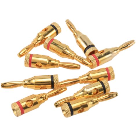 Lot de 8 fiches bananes tressées plaquées or pour haut-parleur, connecteurs banane à tissage doux de 2 mm, bornes sans soudure pour amplificateur, haut-parleur, câble, système audio Il n'est pas facile de détacher et de desserrer pendant le processus de déconnexion. Connecteurs Haut-parleur Sans Soudure YARCHONN Lot De 8 Fiches Bananes Tressées Plaquées Or Pour Haut-parleur 2mm Speaker Banana Screws Conseils : pour éviter de perdre les petites vis, il est préférable de ne pas dévisser complètement les vis lorsque vous dévissez les vis, il suffit de desserrer les vis et de laisser les fils être insérés dans la fiche banane. Les adaptateurs Banana Spine de 2 mm sont compatibles avec 12 à 18 câbles d'enceintes AWG, accepte la taille du câble jusqu'à 4 mm. Largement utilisé pour câble audio pour récepteurs audio/vidéo, amplificateurs, plaque murale du système audio, etc. Connecteurs Banane - SONEW - 30 Paires - Prises Mâle Femelle Plaqué Or... 2 PCS ACCESSOIRES De Sonorisation Connecteurs Bornes D'enceintes Banane Les terminaux sans soudure pour le câble du haut-parleur sont conçus à vis avec des vis à double set rendent l'installation du câble de haut-parleur plus pratique, aucune soudure nécessaire. La coque en aluminium fermée peut prévenir la conductivité, augmentant la sécurité. Les fiches Bent Banana Pin de 2 mm peuvent se connecter directement aux poteaux de reliure des composants audio sans solution de continuité, offrent une connexion plus sûre et plus sûre que les câbles nus, réduisent le risque de problèmes électriques.
