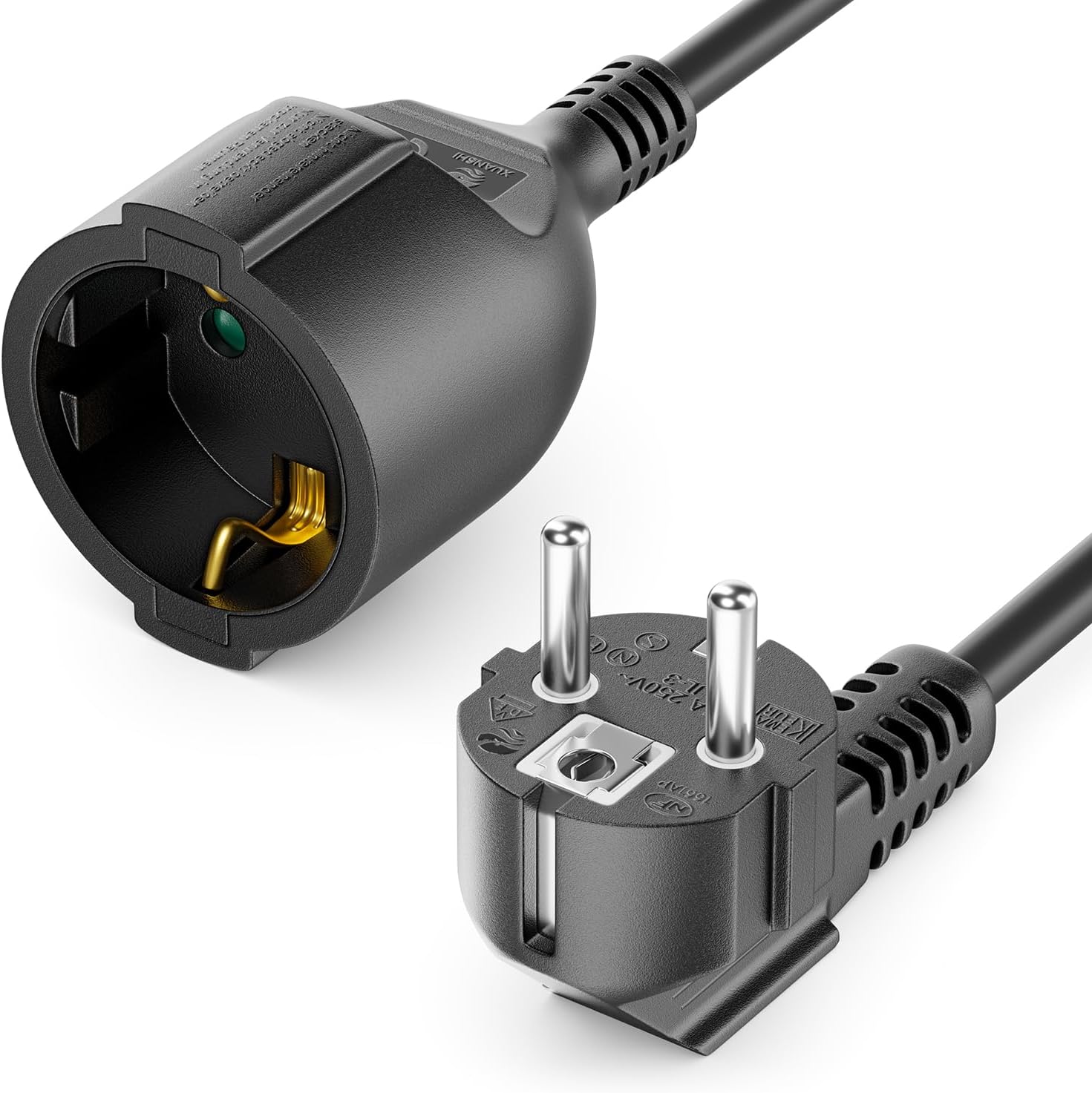 Bénéficiez d’une alimentation pratique et sécurisée avec la rallonge Hama 3 m avec prise européenne coudée Type C (CEE 7/16), idéale pour les espaces exigus tels que derrière un meuble ou un canapé grâce à sa prise à angle de 90° et sa fiche plate peu encombrante. Hama Rallonge Prolongateur Câble d'Extension Électrique Coudé 3m - Prise Européenne Coudée Type C (2 Broches, sans Terre), Idéale pour Espaces Exigus et Usage Intérieur - Blanc 4,8 (51) Plus de 50 achetés au cours du mois dernier 799 Ce câble robuste, en H03VVH2‑F avec section de 0,75 mm², supporte une charge maximale de 3 680 W et garantit une haute résistance mécanique grâce à ses fiches mâle et femelle moulées par injection. PLUS DE PORTÉE AU QUOTIDIEN : Câble de 3 mètres pour brancher facilement vos appareils, même loin de la prise murale Contenu de la livraison : 1x rallonge Rallonge Hama Type C Sans Terre 0.75mm² Hama Rallonge Prolongateur Câble D’Extension Électrique Coudé Rallonge Coudée 3m La protection anti-pliage intégrée assure la durabilité du câble, tandis que la sécurité renforcée contre les contacts accidentels protège les utilisateurs. PRISE COUDÉE GAIN DE PLACE : Idéale derrière les meubles ou dans les espaces étroits grâce à sa fiche orientée à 90° UTILISATION SÛRE EN INTÉRIEUR : Parfaite pour la maison ou le bureau – alimentation stable pour lampes, chargeurs, etc Rallonge avec fiches mâle et femelle BRITEQ Câble prolongateur triphasé souple 5G6 5 pôles CEE 32A 10m Caractéristiques techniquesCouleur BlancConnecteur Fiche Euro femelle, Fiche Euro mâleType de plug de connexion d'alimentation Euro Plug, Type C (CEE 7/16)Charge maximale 575 WType de câble H03VVH2-FNombre de conducteurs 2Longueur 3 mSection des conducteurs 0,75 mm² Rallonge electrique 3m Rallonge electrique 3m : la sélection produits Leroy Merlin de ce dimanche au meilleur prix ! Retrouvez ci-après nos 229 offres, marques, références et promotions en stock prêtes à être livrées rapidement dans nos magasins les plus proches de chez vous