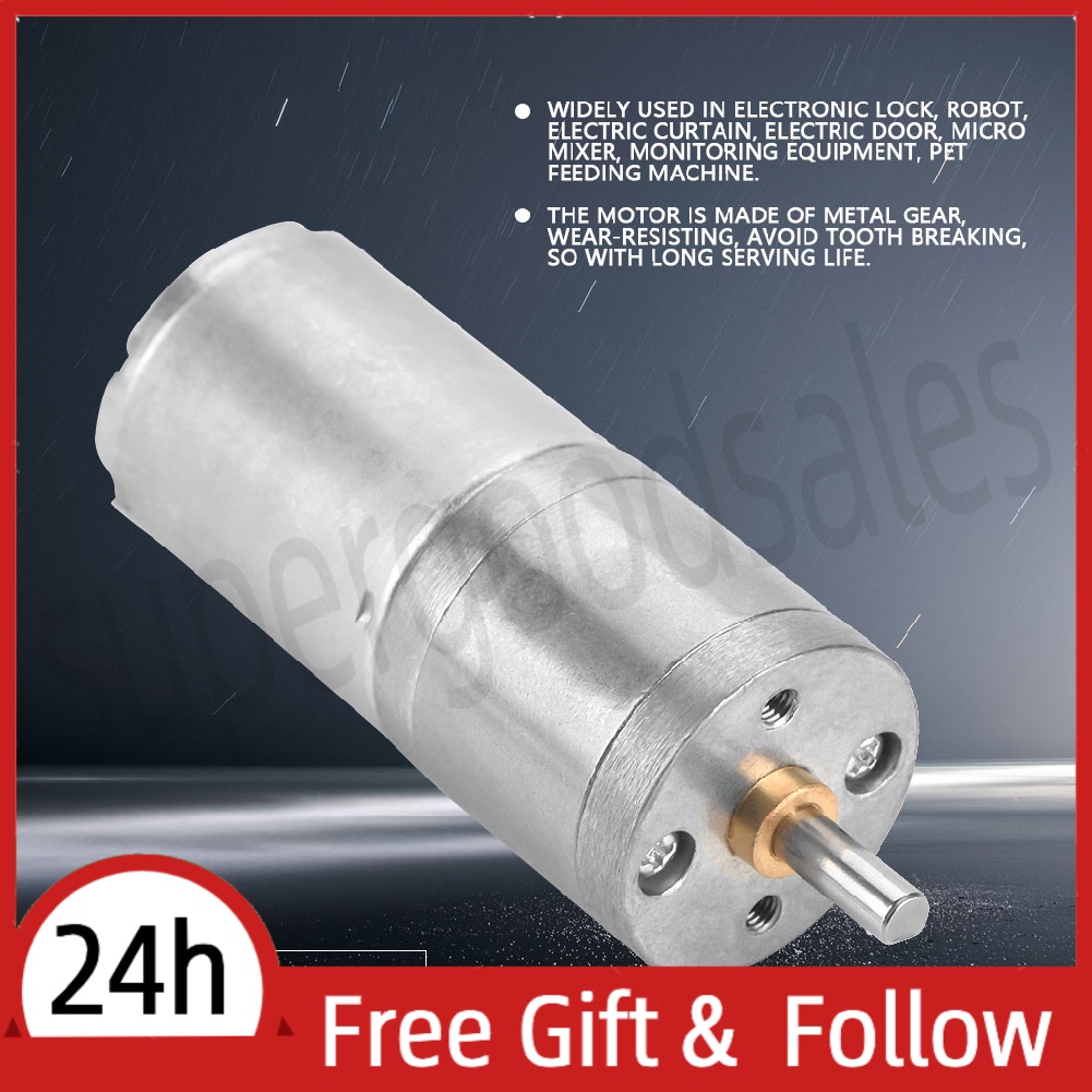 cm 12V 1:50 200RPM ≤ 180MA 165RPM ≤ 105MA 580gf., cm ≤ 2., 1A 8., 8kgf. cm 12V 1:150 30RPM ≤ 170MA 25RPM ≤ 100MA 770gf., cm ≤ 2., 1A 12., 0kgf. Ce produit est un moteur à engrenages à courant continu avec engrenage en métal de haute précision, travail stable 2. Ce moteur à courant continu présente un grand moment de force, une faible vitesse et un faible bruit Le moteur est fait d'un engrenage en métal, résistant à l'usure, évite les cassures de dents, donc avec une longue durée de vie. Ce moteur est adopté en bobine de fil de cuivre , à faible chaleur et à faible perte cm 12V 1:30 300RPM ≤ 190MA 254RPM ≤ 145MA 180gf., cm Motor, 1 Unidad, 25 Mm, Dc, 12 V, 25ga-370, Engranaje De Met | Cuotas sin interés Le moteur est fait en vitesse en métal, résistant à l'usure, évitent la dent se cassant, ainsi avec la longue vie de portion. Largement utilisé dans les serrures électroniques, les robots, les rideaux électriques, les portes électriques, les micro-mélangeurs, les équipements de surveillance, les machines d'alimentation pour animaux de compagnie. Pour Rideau électrique Robot CHE - Moteur à Engrenages Moteur à Courant Continu 1 Pièces 25mm DC 12V Moteur Métallique Longue Durée cm 12V 1:200 60RPM ≤ 170MA 51RPM ≤ 100MA 750gf., cm ≤ 2., 1A 11., 8kgf. Spec: Caractéristiques: Ce produit est un moteur à engrenages à courant continu avec engrenage métallique haute précision, fonctionnement stable Ce moteur à courant continu présente un grand moment de force, une faible vitesse et un faible bruit. Largement utilisé dans la serrure électronique, robot, rideau électrique, porte électrique, micro-mélangeur, équipement de surveillance, machine d'alimentation pour animaux de compagnie Spécifications: Modèle: GA25YN370 Puissance nominale: 3,5 (W) Type de produit: moteur à courant continu de brosse Tension nominale: 5-12 (V) Courant nominal: 0,06 (A) Type (facultatif): 12V 5 tr/min, 12V 10 tr/min, 12V 30 tr/min, 12V 60 tr/min, 12V 100RPM, 12V 200RPM, 12V 300RPM, 12V 400RPM, 12V 500RPM, 12V 1000RPM Diamètre extérieur: 25mm/1., 0in Diamètre de l'arbre: 4mm / 0., 2in Longueur de l'arbre: 10mm/0., 4in Poids: 96g/3,4 oz Tension Rapport d'engrenage Stall vitesse Vitesse actuelle toqure actuelle 12V 1:650 5RPM ≤ 150MA 3RPM ≤ 70MA 1150gf., cm ≤ 2., 1A 15., 4kgf.