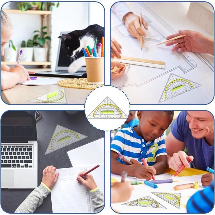 Un cadeau d'anniversaire pratique et attentionné pour les étudiants, les enseignants et les ingénieurs. Set de traçage Ulmann - Règle 20 cm, Équerre, Rapporteur - Incassable 4 Pièces Requerre, Equerre Ecole, Regle equerre rapporteur, avec étui de Rangement, Jeu de règles géométrie mathématique Alliage Aluminium, Papeterie mathématiques, pour étudiants Enseignants 【Poignée détachable】Notre outil de dessin triangulaire est équipé d'une poignée détachable qui peut être insérée dans le trou au centre de la règle, ce qui la rend plus pratique et meilleure pour contrôler la règle pendant le dessin et facile à utiliser. Il est très adapté à divers scénarios d'application tels que le dessin, la cartographie et la modélisation. Set de géométrie 4 pièces pour l'école. Plastique flexible. 1 règle 300 mm, 2 équerres et 1 rapporteur. Modèle 244304 MAPED Mini Flex. Choix d'équipements et de fournitures scolaires 【A de nombreuses utilisations】Ces rapporteurs géométriques en plastique transparent conviennent à l'apprentissage et au travail et peuvent également être utilisés pour une variété de tâches de dessin, de mesure et techniques. Parfait pour l'école, l'éducation, l'apprentissage et le travail quotidien. Outils Géométrie Plastique Transparent 12 Pièces Equerre Rapporteur Triangle Géométrique En Plastique Transparent Équerre Géométrique Outil Dessin Technique étudiants