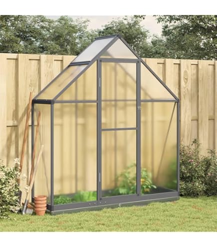 Hauteur de la base : 10,5 cm Sa conception est parfaitement adaptée pour accueillir une variété de plantes, qu'il s'agisse de fleurs délicates ou de légumes savoureux. Avec ses dimensions optimales, cette serre à fleurs s'intègre facilement dans votre jardin, sur votre balcon ou votre terrasse Fabriquée en aluminium et en acier, cette solide serre est résistante aux UV et isolée thermiquement. Avertissement De Sûreté L'assemblage nécessite une manipulation minutieuse des bords de verre tranchants et des composants lourds. Créez un espace idéal pour propager les graines et les protéger du froid avec cette serre en verre Garantit une bonne ventilation et un ancrage lors de l'installation. La serre en verre garantit la croissance efficace de vos plantes en stockant l’humidité et en offrant une protection optimale contre les conditions météorologiques extrêmes., Couleur : anthracite Serre en verre – Trouvez le meilleur prix Dimensions de la porte : 49 x 154 cm (l x H) L'abri en verre a une construction en aluminium robuste et sans entretien avec un cadre de base en acier pour plus de stabilité. Épaisseur de verre : 3 mm Créez un espace idéal pour propager les graines et les protéger du froid avec cette serre en verre. Fabriquée en aluminium et en acier, cette solide serre est résistante aux UV et isolée thermiquement Structure Aluminium Acier VidaXL Serre En Verre Abri Plantes Serre à Fleurs Serre à Plantes Serre En Verre Jardin Dimensions : 155 x 200,5 x 191 cm (l x P x H)