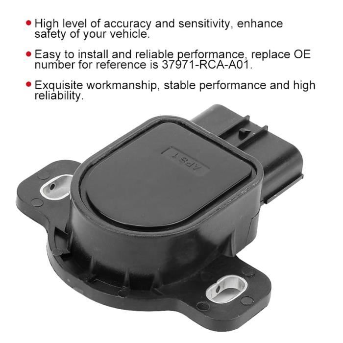 Réalisé selon les normes d'origine de l'usine, il s'adapte parfaitement à la taille du modèle ajusté. [Matériau] Fabriqué en métal pour des performances stables et fiables, garantissant une fonctionnalité. [Qualité OE] Strictement fabriqué selon les spécifications OE par un fabricant OE et testé à 100 % en usine pour des performances fiables. 【Pratique à utiliser】 : Plus pratique et pratique, facile à installer, apporte grand confort de fonctionnement et d'utilisation. [Matériau] Fabriqué en métal pour des performances stables et fiables, assurant une fonctionnalité. Opel Zafira B Capteurs de position pédale d'accélérateur stock 【Matériaux sophistiqués】 : Le capteur de position de la pédale d'accélérateur est construit avec des matériaux métalliques de qualité supérieure pour une durabilité, une usure et une résistance aux chocs maximales. Conforme aux spécifications standard. Usagé Citroen C4 Berline (NC) 1.6 e-HDI Capteur de position pédale d... Capteur Position Accélérateur 37971-rdj-a01 Capteur De Position De Pédale D'accélérateur, Assemblage De Capteur De Pédale D'accélérateur De Voiture Compatible Avec CRV PILOT RIDGELINE MDX TL TSX, OEM 37971 RDJ A01 Pièce Rechange Honda Crv Pilot Ridgeline 【Gamme d'application à grande échelle 】: Compatible avec CRV PILOT RIDGELINE MDX TL TSX. [Pièce de rechange précise] Conçu pour avoir la même forme, le même ajustement et la même fonction que la pièce d'origine d'origine, garantissant un remplacement direct pour une utilisation facile. Capteur pédale accelerateur pour FORD Fiesta d'occasion pas cher [Large compatibilité] Spécialement conçu pour s'adapter à , Modèles Pilot, Ridgeline, , Mdx, Tl et Tsx, offrant une utilisation polyvalente pour divers véhicules. (Veuillez vous référer à la description pour les paramètres détaillés du produit) Description du produit Ensemble de Capteur de Pédale D'accélérateur 37971RDJA01 pour CRV PILOT RIDGELINE MDX TL TSX Aucun per?age ni découpe requis.
