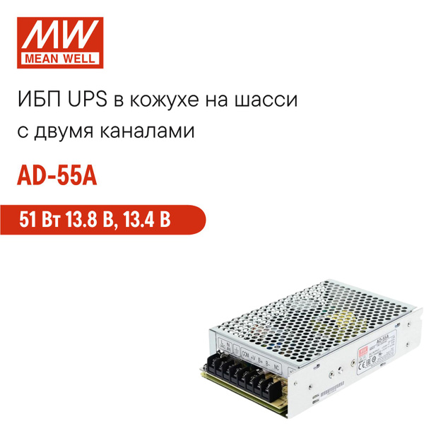 Fabricant : Mean Well IT Distributeur : SWATEE ELECTRONICS (distributor for US & EU) Condition: Brand new components in manufacturer package Dispatch delay : 2 - 5 working days Dispatch location : Allemagne ou Czech Republic AD-55A Mean Well sold by SWATEE ELECTRONICS Alimentation électrique 51,38 W 13,8 V 3,5 A 13,4 V 0,23 A. Numéro de pièce : AD-55A (88775026). AD-55A | Alimentation à découpage MEAN WELL, 51W, sorties à 2 Manufacturer: Mean Well IT AD-55A Mean Well Ladegeräte, 50W - Elektronik Bloc Alimentation 13,8V 3,5A 51W AD-55A | MEAN WELL | Alimentations AC/DC | Capotees AC/DC Alimentation Pour équipement électronique AD-55A Alimentation AC/DC avec fonction UPS - Double sortie - 55W 13,8V/13,4V Disponible sur commande Délais standards d'approvisionnement (Départ bateau Asie) : 10-12 sem