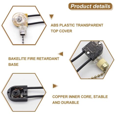 Idéal pour les salles de bains et les buanderies, alliant qualité et élégance moderne, durable, fiable et facile à installer. Interrupteur à Chaîne de Lampe de Rechange, Opération Facile Interrupteur a tirette pour ventilateur de plafond Caractéristiques électriques du commutateur de ventilateur de plafond ZE-208S: 6A 125VAC - 3A 250VAC. Remarque : une prise de vue légère et différents affichages peuvent rendre la couleur de l'élément de l'image légèrement différente de la réalité. Schéma électrique ventilateur plafond 3 vitesses 3 vitesses 4 fils : équipé d'une commande rotative à 4 fils et d'un modèle à 3 vitesses, le remplacement de l'interrupteur d'éclairage du ventilateur de plafond dispose de 3 modes de réglage, à savoir : OFF, Low, Medium, High (OFF, L-1, L-2 -3, L-3 ), de quoi répondre à vos différents besoins Seul le contenu de l'emballage ci-dessus, les autres produits ne sont pas inclus. Interrupteur Plafond Or Blanc Kit D'Interrupteur De Ventilateur De Plafond 5 Pièces Le Ventilateur Contrôleur Vitesse Ventilateur Plafond
