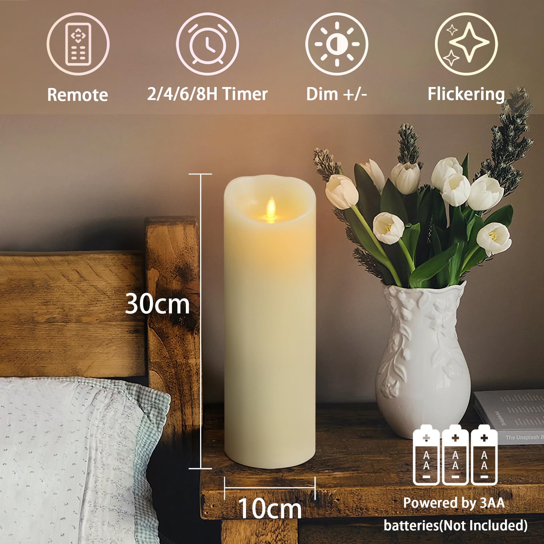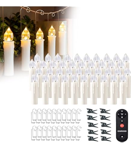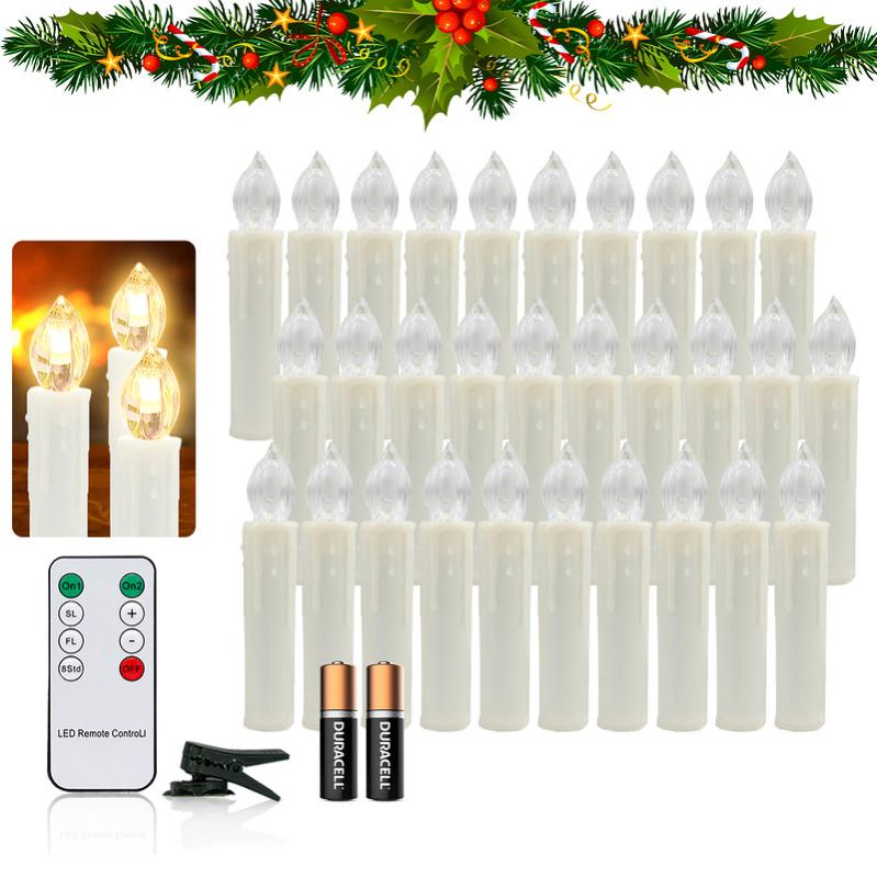 Étanche pour l'extérieur : chaque bougie en plastique avec clip vert et anneau étanche, facile à fixer au sapin de Noël, peut être utilisée à l'intérieur et à l'extérieur Éclairage de Noël LED : avec leur lumière blanche chaude naturelle, elles ressemblent à de vraies bougies vacillantes et créent une atmosphère relaxante et joyeuse. Pas d'enchevêtrement, pas de flammes, pas de risque d'incendie, sans danger pour les familles avec animaux domestiques ou enfants Bougies Scintillantes Jardin ZIYOUDOLI Pack De 6 Bougies LED Extérieur - Télécommande, Minuterie, Effet Scintillement - Étanches, Sans Flamme - Blanc Chaud - Pour Jardin, Terrasse, Décoration Fête Bougie Telecommande Bougies de Noël LED sans fil avec minuterie - Lumière vacillante - Intensité réglable - Bougies pour sapin de Noël, Halloween et décoration de fête - Sans fil Décorez votre arbre de Noël avec ces 30 bougies LED blanches sans fil. La scintillante lumière blanche chaude des bougies XMS-35.r de Lunartec rappelle la douce lueur d'une bougie classique, mais sans fumée ni risque d'incendie Bougies LED sans fil yunsheng - Lot de 30 - Télécommande et