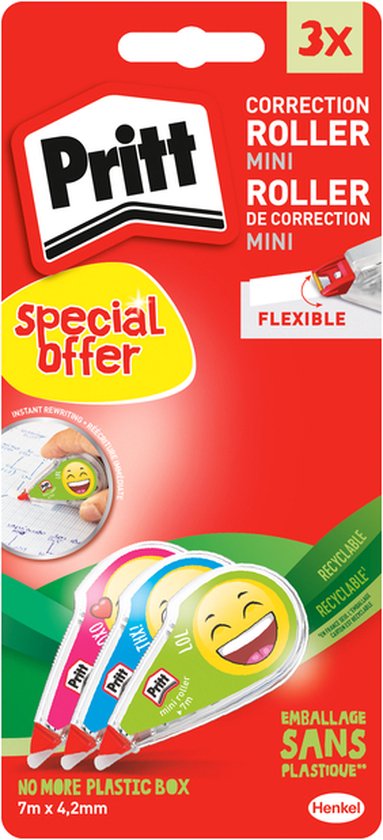 Cartouche de recharge pour roller de correction Refill Flex Pritt, fonction Push & Pull, 6 mm ou 4,2 mm de largeur acheter à prix avantageux | Schäfer Shop Roller De Correction Compact Flex Roller Jetable Correction à Sec 4 2 Mm X 10 M Pritt Pritt dérouleur de correction Compact Flex 6 mm x 10 m, sous blister bij VindiQ Office Corrigez rapidement vos documents manuscrits ou imprimés grâce au roller de correction Compact Flex Pritt qui permet désormais une correction dans les deux sens