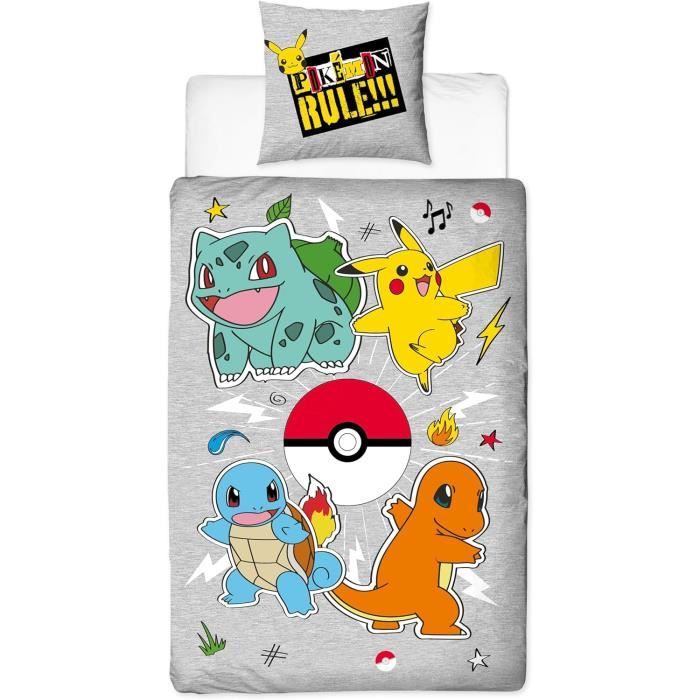 Plongez dans l'univers captivant de Pokémon avec cette magnifique parure de lit pour enfant. L'ensemble comprend une housse de couette réversible 140x200 cm et une taie d'oreiller 63x63 cm, parfait pour un lit 1 place Parure de lit avec motifs colorés de Pikachu et des Starters sur fond bleu clair, parfait pour les fans de la série Lit Enfant 140x200 Parure De Lit Pokemon Pour Enfant, Housse De Couette 140x200 Cm Et Taie D' Oreiller, Avec Pikachu, Dracaufeu, Lucario, Ectoplasma Et Cizayox, 100% Coton Literie Pokémon Microfibre Douce Plongez dans l'univers captivant de Pokémon avec cette superbe parure de lit pour enfant. Textile certitifée Oeko Tex sans substance nocive, doux et confortable, idéal pour toutes les saisons Motif double face avec logo Pokémon et Poké Balls, design ludique pour chambre d'enfant Housse De Couette Pokémon Pikachu Et Ses Amis Parure de lit Ensemble... Parure de lit coton, pokémon rocks imprimé Pokemon | La Redoute Le design enchanteur met en scène les Pokémon emblématiques, Bulbizarre, Salamèche, Carapuce et l'adorable Pikachu sur un fond bleu clair apaisant, agrémenté de motifs Poké Ball. Comprend une housse de couette réversible 140x200 cm et une taie d'oreiller 63x63 cm pour lit 1 place L'ensemble comprend une housse de couette réversible 140x200 cm et une taie d'oreiller 63x63 cm, parfaits pour un lit 1 place.