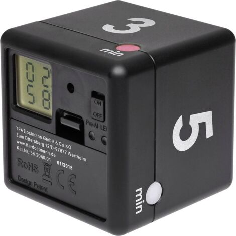 Vos avantages avec le minuteur numérique cube CUBE-Timer de TFA Dostmann : ✔ ; 4 temps de déroulement fixes préréglés : 5 - 15 - 30 - 60 min. Quatre temps de déroulement (5 - 15 - 30 - 60 minutes) sont préprogrammés et imprimés sur la face supérieure du dé. La lampe LED peut également être éteinte. Temps restant : affichage clair et facilement reconnaissable du temps restant du minuteur (avec préalarme) - Minuteur sans son uniquement avec lampe LED Lorsque le temps sélectionné est atteint, le voyant LED clignote et un signal sonore rappelle qu'il faut arrêter l'activité en cours. TFA Dostmann Eieruhr Timer digital, 38.2021.02, magnetische Küchenuhr L'entreprise familiale a son siège à Wertheim sur le Main et fait partie des leaders européens dans ce secteur. Utilisation : idéal comme minuteur de cuisine, minuteur sportif, minuteur pour les devoirs, cubes de temps, minuteur pour les débats ou même comme table de jeu Bereits ab 10,99 € Große Shopvielfalt Testberichte & Meinungen | Jetzt TFA Dostmann Cube Timer digitaler Würfeltimer 38.2032.02 weiß günstig kaufen bei Prise Minuteur TFA Dostmann Digital Cube Timer, 38.2032.02, Cube De Temps, Chronomètre, Minuteur D'apprentissage, Pour Les Jeux, Minuteur Pour La Productivité, Avec 4 Temps De Déroulement : 5 15 30 60 Min, Blanc Minuteur Visuel Sur demande, une pré-alarme annonce 10 secondes avant que le temps d'expiration soit atteint. Il suffit de tourner le temps souhaité vers le haut pour que la minuterie se mette en marche immédiatement. TFA Dostmann Digital Cube Timer, 38.2032.02, Cube de Temps, chronomètre, minuteur d'apprentissage, pour Les Jeux, minuteur pour la productivité, avec 4 Temps de déroulement : 5 15 30 60 Min, Blanc Le petit écran tourne en même temps et affiche le compte à rebours. ✔ ; L'écran avec le temps écoulé tourne avec le minuteur ✔ ; signal de déroulement optique et acoustique réglable Caractéristiques techniques ✔ ; Horloge : minuterie ✔ ; Matériel : plastique ✔ ; Montage : à poser ✔ ; Plage de mesure : 5 - 15 - 30 - 60 minutes ✔ ; Alimentation en énergie : Piles ✔ ; Piles : 2 x 1., 5 V AAA (non incluses) ✔ ; Dimensions : (L) 60 x (l) 60 x (H) 60 mm ✔ ; Poids : 58 g ✔ ; Contenu de la livraison : Minuteur numérique à cubes, mode d'emploi . Description du produit Cette minuterie à cubes est le garde-temps idéal au travail et à l'école, pour les longues séances d'entraînement ou dans la cuisine pour cuisiner et faire de la pâtisserie. Alimentation : 2 piles AAA 1,5 V (non incluses)