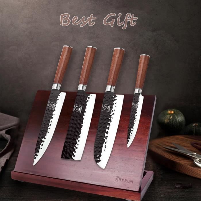 Les couteaux polyvalents étaient à l’origine des lames fixes à arêtes tranchantes, adaptées à des tâches générales telles que la coupe des peaux et des cordes, le raissage des peaux, l’abattage des animaux, le nettoyage des poissons et d’autres tâches., [Longueur totale :20., 5cm][longueur de la lame :9cm][longueur de la poignée :11., 5cm] [Poids net: 0., 091 kg] [épaisseur: 2,0mm] [dureté rockwell :HRC 60 + 2] [Nombre de couches: 33 de chaque côté] [âme en acier: poignée vg10: ABS complet] ---- Le couteau de Parking est un petit couteau polyvalent, à bords plats, parfaitement adapté pour éplucher (ou éplucher) les fruits et légumes, ainsi que pour d’autres tâches minces ou complexes (par exemple, enlèvement des filets de crevettes, retrait des graines du poivre, éplucher ou découpage de petites décorations). La longueur de 13 est idéale pour l’usinage de couteaux de toutes formes et dimensions. Qu’y a-t-il dans le paquet? 6 couteaux de damas + aiguilles de couteaux + ciseaux de cuisine + couteaux à blocs de bois naturels + boîtes bien emballées + soutien en ligne 24/7 des frères du sud. ENSEMBLE COMPLET TOUT-EN-UN - L'ensemble de couteaux professionnels de Damas comprend un couteau de chef de 8 pouces, un couteau de 8 pouces, un couteau à pain de 8 pouces, un couteau santoku de 7 pouces, un 5,5 Couteau utilitaire, un couteau d'office de 3,5 pouces, des ciseaux de cuisine et un aiguiseur de couteau pour rester tranchant et un bloc de bois de hêtre. Le bloc comprend un pied en caoutchouc destiné à assurer la stabilité. Couteaux de coupe de 8 (2,5 mm) Sa lame large offre également un moyen pratique de ramasser la nourriture de la table à couper dans un bol ou une casserole. Il avait une forme semblable à celle de sandek, avec deux différences, il avait des dents en dents, et il était beaucoup plus long. Il peut être utilisé pour hacher, trancher en tranches, couper des légumes, couper de la viande en tranches, et pour découper de gros morceaux. Après avoir subi un traitement thermique à haute température de plus de 1000 degrés et un procédé de forgeage à froid de moins 100 degrés. Chaque poignée est triplement rivetée pour améliorer sa durabilité Les arêtes des feuilles peuvent atteindre jusqu’à 2 hrc60., Comment distinguer le vrai du faux damas? Dans quelques rares cas, on a essayé d’imprimer un dessin sur une lame à l’aide d’un laser, faisant passer l’acier inoxydable ordinaire non stratifié en acier damasqueux. Couteaux à pain de 8 pouces (2,5 mm) Ça a l’air exotique, magnifique. Ensemble De Couteaux Avec Bloc De Couteaux En Bloc - Ensemble De Couteaux Avec Bloc De Couteaux En Bloc Ensemble De Couteaux De Cuisine 15 Pieces Couteau De Chef En Bloc Marron Ensemble De Couteaux Premium King Kitchen Ils sont facilement reconnaissables parce qu’ils ne ressemblent pas à damas ou les motifs sont effacés. 8 blocs de bois de hêtre à rainures, [Longueur totale :33., 5cm][longueur de la lame :20., 7cm][longueur de la poignée :12., 8cm] [Poids net: 0., 246 kg] [épaisseur: 2,5 mm] [dureté rockwell :HRC 60 + 2] [Nombre de couches: 33 de chaque côté] [âme en acier: poignée vg10: ABS complet] ---- Les couteaux de cuisinier sont des couteaux polyvalents conçus pour accomplir de nombreuses tâches de cuisine différentes, sans être spécialisés dans une seule. ENSEMBLE DE COUTEAUX PROFESSIONNELS Cuisine - L'ensemble de blocs de couteaux se compose d'un noyau en acier japonais VG10 avec 67 couches et de lames en acier Damas supérieures pour plus de précision et d'exactitude. Dans votre quête pour transformer chaque repas en une véritable expérience culinaire, vous méritez des outils à la hauteur de votre passion. Le set de couteaux Damas 9 Pièces allie élégance et performance grâce à son acier damassé 67 couches, offrant une coupe précise et sans effort Ce procédé de laminage, dans lequel différents types d’acier se combinent pour produire des motifs visibles sur la surface de la lame finie, forme la base du soudage des motifs. Applicable à: viandes découpées en morceaux tels que poulet, porc, bœuf, cervidés, poisson., [Longueur totale :30., 7cm][longueur de la lame :17., 5cm][longueur de la poignée :13., 2cm] [Poids net: 0., 222 kg] [épaisseur: 2,5 mm] [dureté rockwell :HRC 60 + 2] [Nombre de couches: 33 de chaque côté] [âme en acier: poignée vg10: ABS complet] ---- Le Knife Santoku est naturel pour la fabrication de morceaux de viande, de fruits de mer, de fromage, de fruits et de légumes. Le motif le plus populaire est le motif aléatoire, c’est pourquoi les couteaux de damas ont un aspect différent des autres. C’est aussi un cadeau délicat pour vous, la famille et les amis. Recommandation pour se laver les mains Conserver secs après lavage du couteau Sharp et thin, Un équilibre parfait Les couteaux en acier damascus sont plus résistants que leurs homologues historiques car ils contiennent moins d’impuretés et sont fabriqués en couches homogènes. Ensemble de couteaux de cuisine 15 pièces avec bloc en bois, couteau de Chef professionnel en acier à motif Laser damas, avec tige d'affûtage de ciseaux Résistance à la corrosion, De haute qualité, Style moderne Couteaux à fruits de 3,5 pouces (2,0 mm) Couteaux d’esthétique de 5,5 pouces (2,0 mm) Il n’y a ni rouille, ni tache, ni tache! Un engagement ferme en faveur de la bonne communication, de l’excellence et des meilleures pratiques dans le secteur afin de servir les clients d’une manière exemplaire. Aiguë, solide et pratique. Ce sont des coupes fines que l’on trouve dans de nombreux plats japonais. Pourquoi les frères du sud? Nous avons plus 30 ans d’expérience dans la fabrication de couteaux de cuisine spécialisés. La lame en zigzag du couteau à pain est capable de couper le pain tendre sans le écraser. Après le broyage, la corrosion est effectuée avec du chlorure de fer ou de l