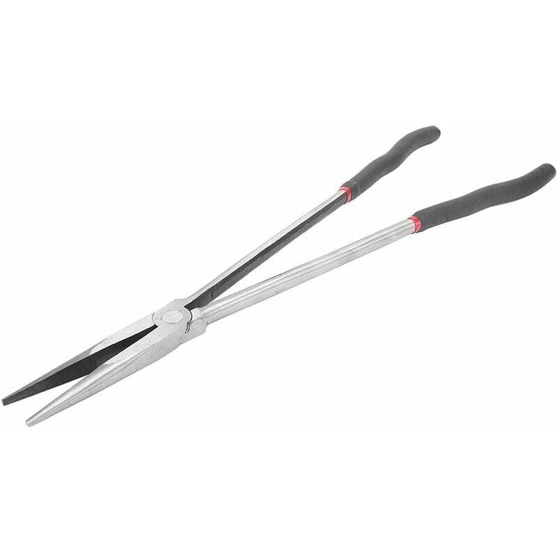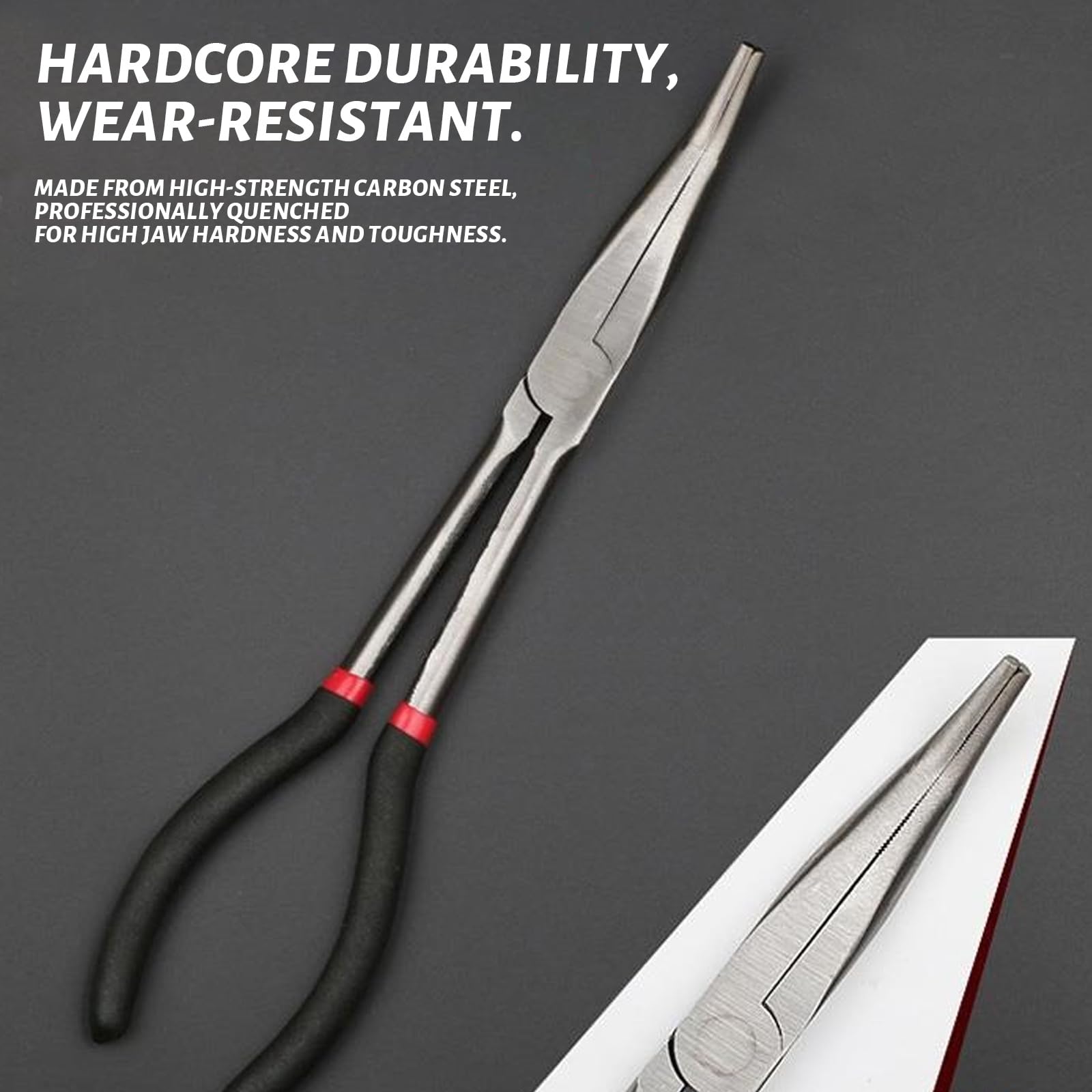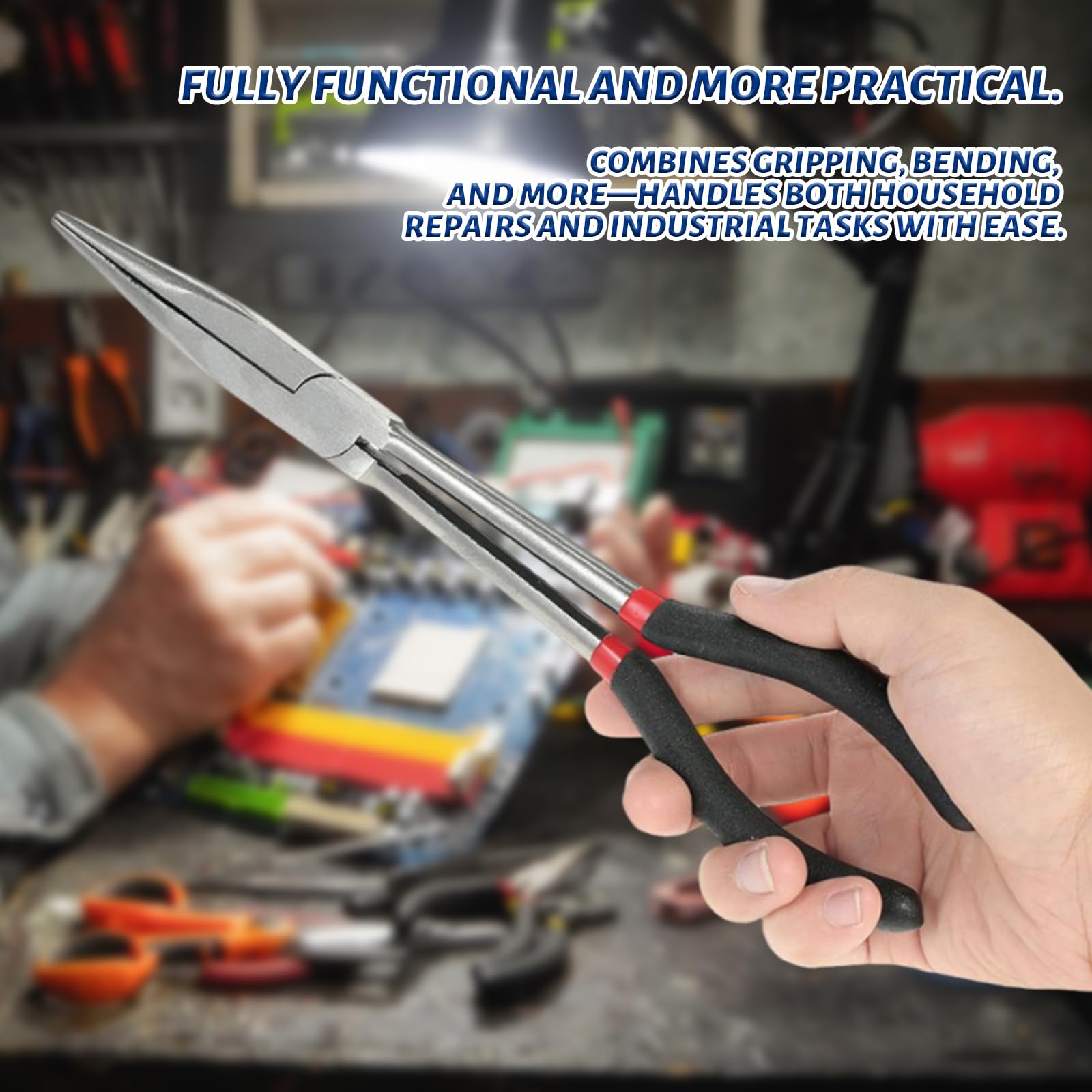 Application] Conception longue portée, facile à pénétrer dans les espaces restreints. Les mâchoires dentelées sont parfaites pour saisir fermement les obstacles et les contourner Service et Assistance : Si vous avez des questions concernant pince a bec electricien, n'hésitez pas à nous contacter. Pince Bijouterie Carrosserie Jeu De Pinces Mécaniques TRAHOO - Pince à Bec Long, Coudé, Aiguille Et Pince Extra Longue 280mm Acier Carbone Spécifications du Produit : Nom du produit : Pince à Bec Incurvé à 25 ♥【Ergonomie Confortable pour Utilisation Prolongée】Pince bec long mécanisme à ressort intégré maintenant l'ouverture automatique, combiné à des poignées anti-dérapantes texturées réduisant significativement la fatigue musculaire et permettant un travail précis même avec des gants techniques. ♥【Polyvalence Professionnelle et Loisirs】Pince à bec aiguille droite outil universel fonctionnant comme: décrocheur à poissons, Pince de précision pour bijouterie, assistant de réparation automobile, Pince électronique spécialisée, Remplace efficacement plusieurs outils spécialisés. Conception Précise pour Espaces Restreints]Pince à bec effilé coudée avec angle optimisé, portée extra longue et mâchoires dentelées spéciales, idéale pour saisir, plier des fils ou extraire des crochets dans les zones difficiles d'accès lors d'opérations automobiles, de réparations électroniques ou d'activités de pêche Pinces Longue Distance et à Bec Long, Pince à Bec Long 11 Pouces Liste des éléments Inclus Dans L'emballage : 1 × Pince Bec Long ♥【Matériau Premium Résistant à la Corrosion】Pince bijoux fabriquée en acier à outils allié de haute qualité subissant un traitement thermique avancé, offrant une résistance exceptionnelle à la rouille et à l'usure pour une longévité nettement supérieure aux pinces classiques. Matériau : Acier au Carbone, Couleur : Noir