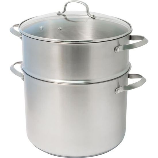 Couvercle Verre Trou Vapeur BAUMALU - Marmite Traiteur En Acier Inoxydable - Couvercle Verre, Trou Vapeur, Poignées Métal - Tous Feux Dont Induction - Triple Fond Diffuseur - 30cm, 16L, Argenté Casserole Inox Conçu pour répondre aux exigences des chefs comme des amateurs, il garantit performance et polyvalence au quotidien pour de savoureuses recettes Faitout Baumalu 24cm B'Chef cuivre inox induction Baumalu, Faitout 24 cm EASY en aluminium forgé avec couvercle en verre, intérieur revêtement anti-adhérent, extérieur noir, manche bakélite avec cache inox, compatible tous feux et induction Robustesse et élégance en cuisine : Conçu en acier inoxydable de qualité, ce faitout allie durabilité et design moderne. Plus de 50 ans de savoir-faire à votre service : BAUMALU se tient à votre entière disposition pour vous satisfaire au mieux avec ses gammes de cuisson. Promo Mijoteuse Haute ø 32 Cm Avec Couvercle En Verre Baumalu chez Tous feux dont induction : Ce faitout s’adapte à toutes les sources de chaleur, y compris l’induction. BAUMALU, le plaisir de cuisiner par excellence ! Sa célèbre gamme de produits en cuivre reste le symbole de ce savoir-faire unique, reconnu et apprécié des passionnés de gastronomie. Cuisson homogène et efficace : Le triple fond diffuseur inox/alu/inox de ce faitout BAUMALU assure une répartition optimale de la chaleur. Et nos clients nous le rendent bien en nous étant fidèles depuis plus de 50 ans ! Leur robustesse permet un transport facile, même lorsque le faitout est plein. Son couvercle en verre avec bord inox et trou vapeur permet de surveiller la cuisson tout en évitant les débordements Initialement spécialisée dans la fabrication d’articles en aluminium, elle a rapidement élargi son savoir-faire en se consacrant également au cuivre massif, devenant une référence en la matière.