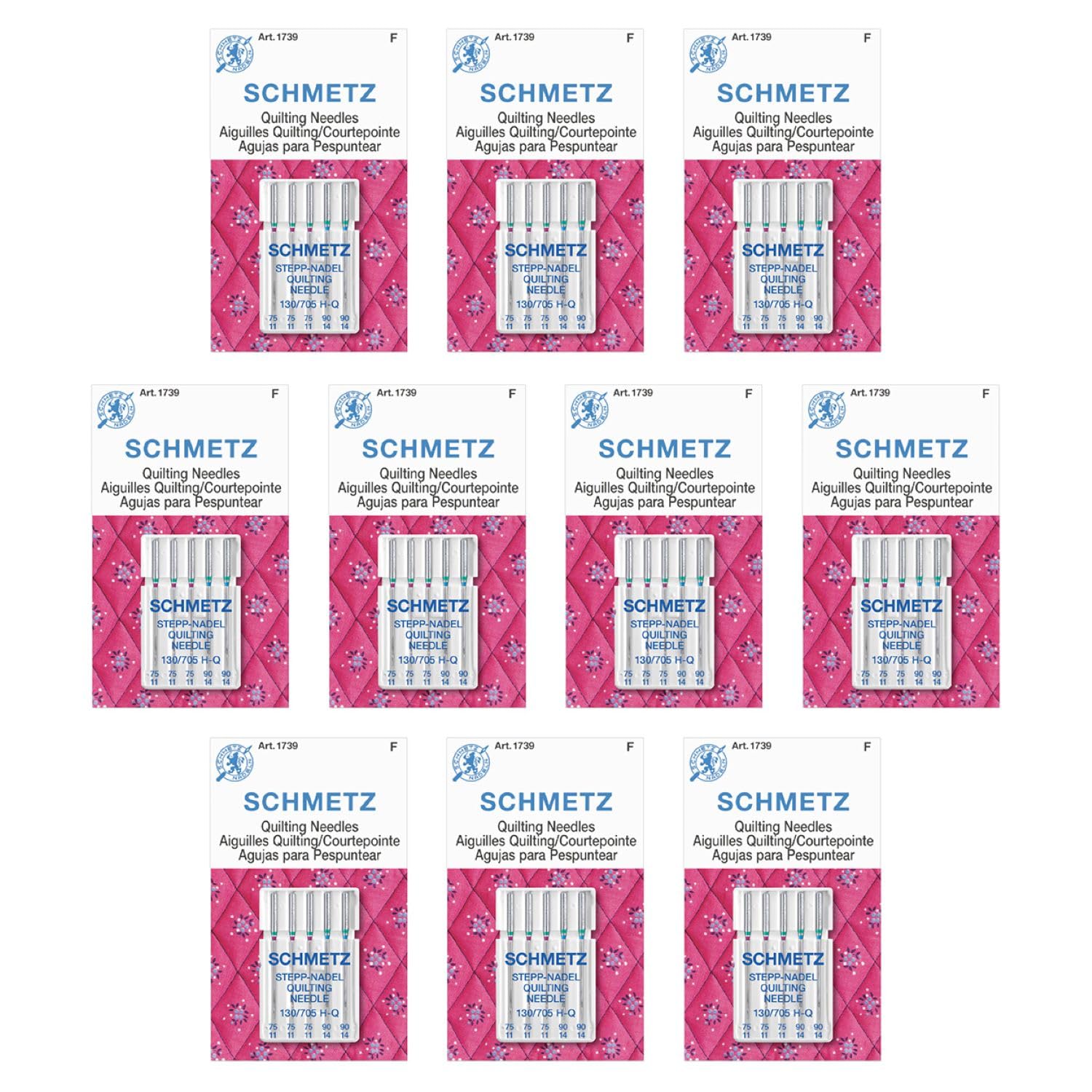 Deux cartes d'aiguilles universelles assorties (130/705 H), 20 aiguilles au total , Tailles : 70/10, 80/12, 90/14 et 100/16 L'aiguille universelle dispose d'une pointe légèrement arrondie. Convient pour tous les types de tissus légers à épais. Aiguilles avec pointe légèrement arrondie pour une couture sans problème pour de nombreuses sortes de matières. Standard pour Bernina, Bernette, Brother, Singer, Pfaff, Husqvarna, Toyota, Janome, Elna Les aiguilles Schmetz standards, aussi appelées universelles, sont relativement polyvalentes et conviendront à toute une panoplie d'ouvrages. Comment choisir la taille de l'aiguille ? Généralement la taille de l'aiguille se détermine en fonction de l'épaisseur de tissu cousu Dispose d'une pointe légèrement arrondie. Schmetz Universal Nähmaschinennadeln Pour tisser et tricoter. Fonctionne avec toutes les marques de machines à coudre domestiques. Aiguilles Pour Machine à Coudre Aiguilles Universelles Schmetz Pour Machines à Coudre - Jaspe Couture Kit Machine A Coudre Un bon choix pour les tissus tissés et tricotés. SCHMETZ Assortiment d'aiguilles universelles pour machine à coudre domestique (système 130/705H) Fabrication allemande. Trente aiguilles au total comprennent les tailles suivantes : six (6) aiguilles de taille 70/10, neuf (9) aiguilles de taille 80/12, neuf (9) aiguilles de taille 90/14 et six (6) aiguilles de taille 100/16., Les aiguilles domestiques ont une tige plate.