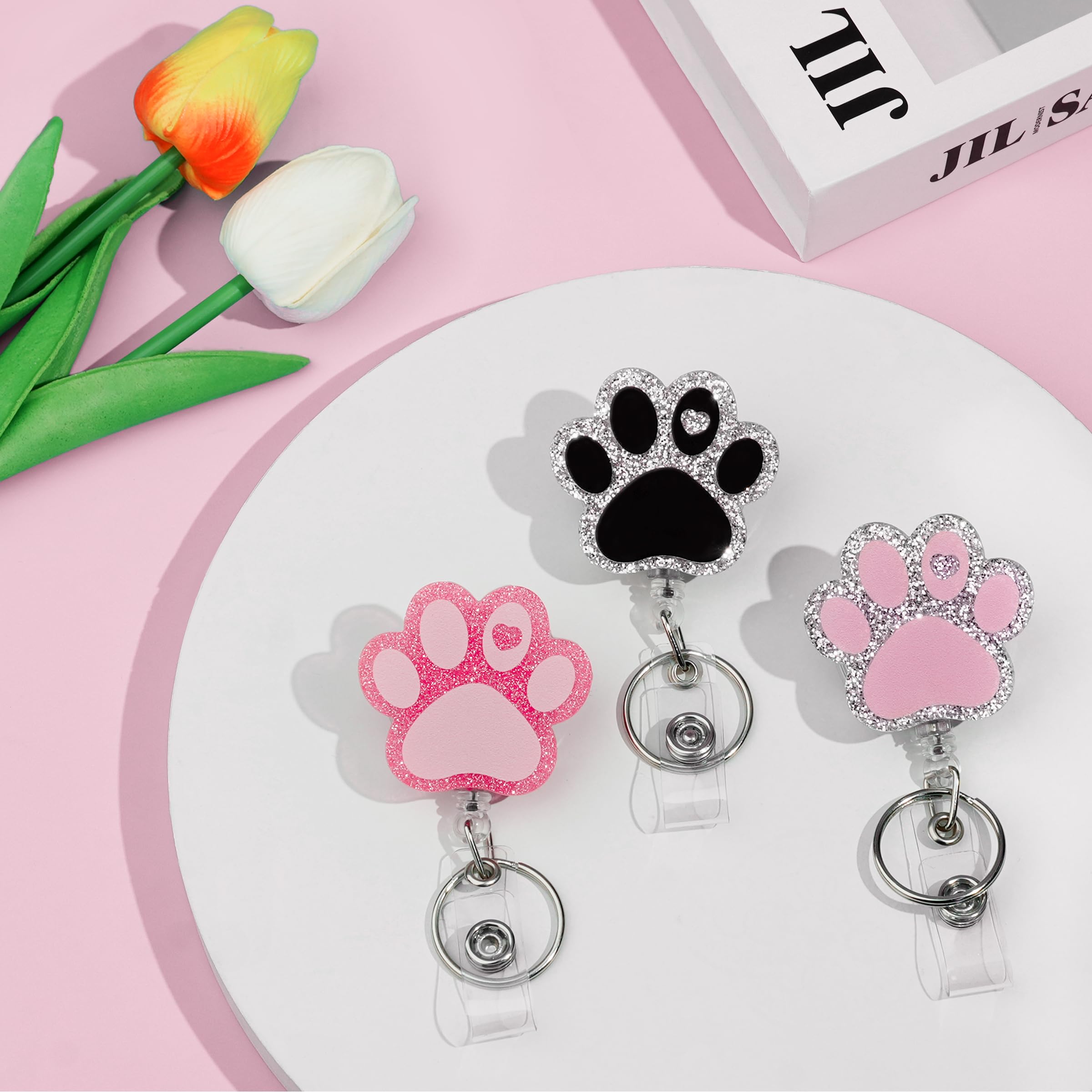 Nurse Teacher Badge Cute Dog Paw Badge Reel - Retractable ID Holder With 32 Cord Badge Reel Dog Bobine de badge Basset Hound, badge d'identification de chien, bobine de badge d'infirmière, bobine de badge de chiot, bobine de badge de sécurité pour IRM, cadeaux de collègue, lanière d'enseignant, badge d'ami Bobine de porte-badge coloré en forme de pattes de chien, porte-badge rétractable pour médecin, infirmière, enseignant, bureau, étudiant · Galerie du produit Le cordon confortable est amovible et réglable, avec un fermoir détachable pour plus de sécurité. La bobine de badge rétractable facilite la numérisation des cartes ou le retrait des clés